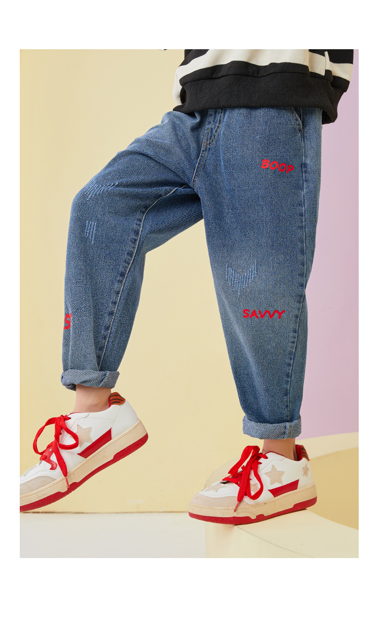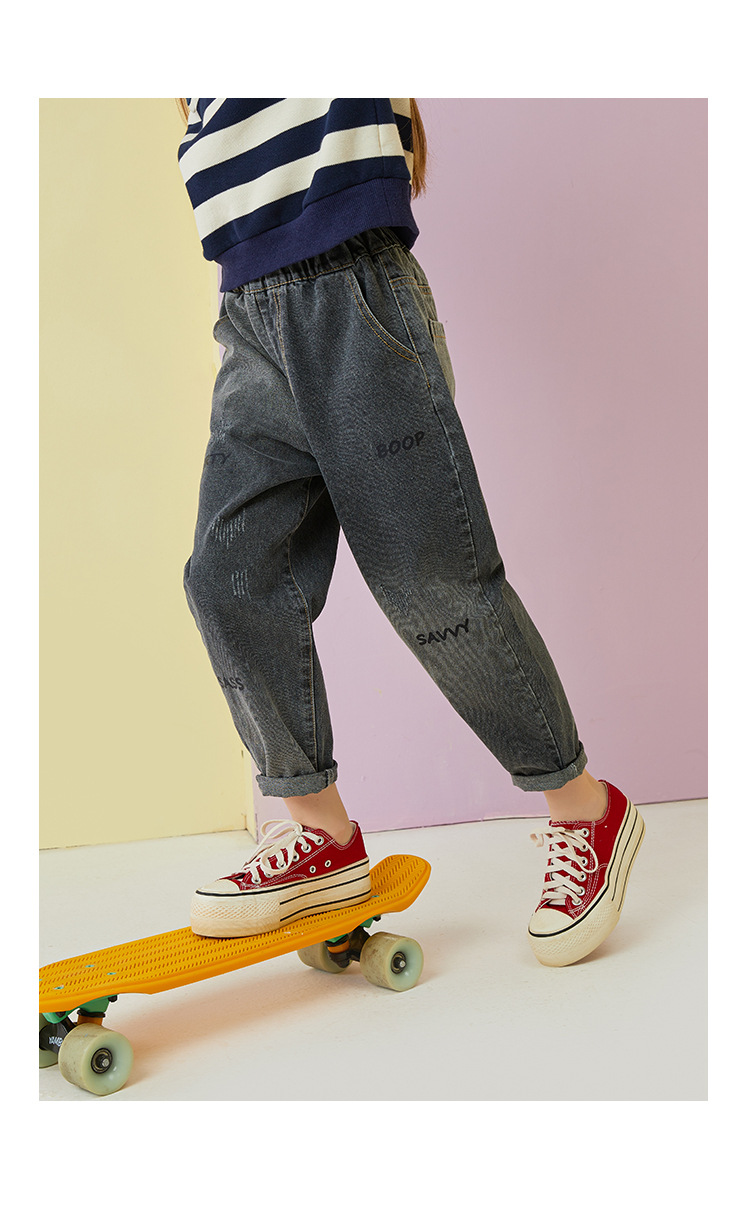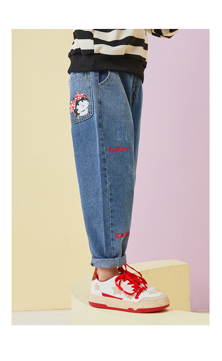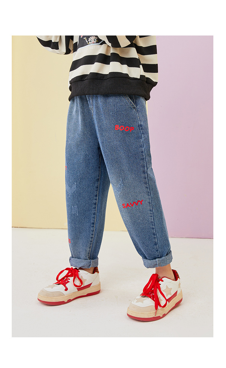 베티 아동복 가을 겨울 여아 스트레이트 데님 팬츠 2024 한국판 여아용 가을 긴바지 플리스 안감스토어 가기