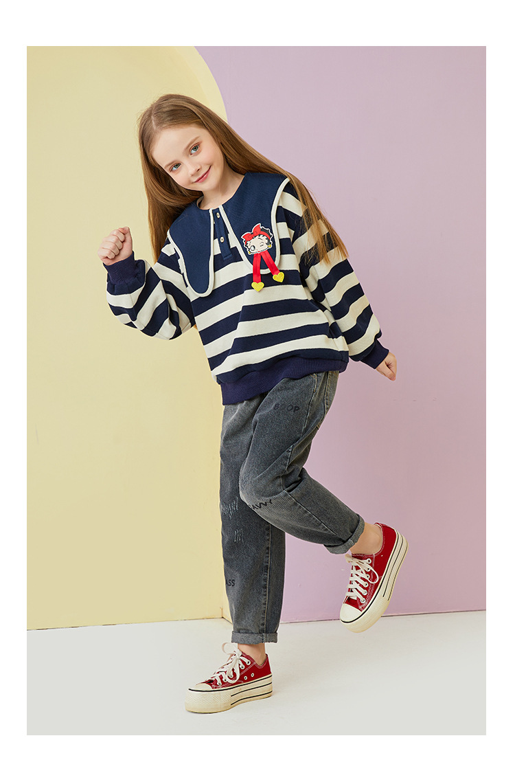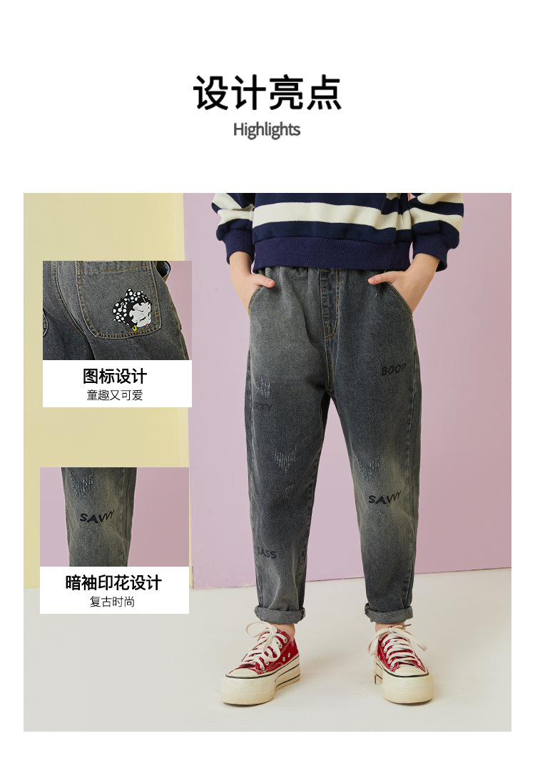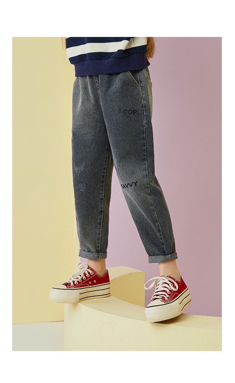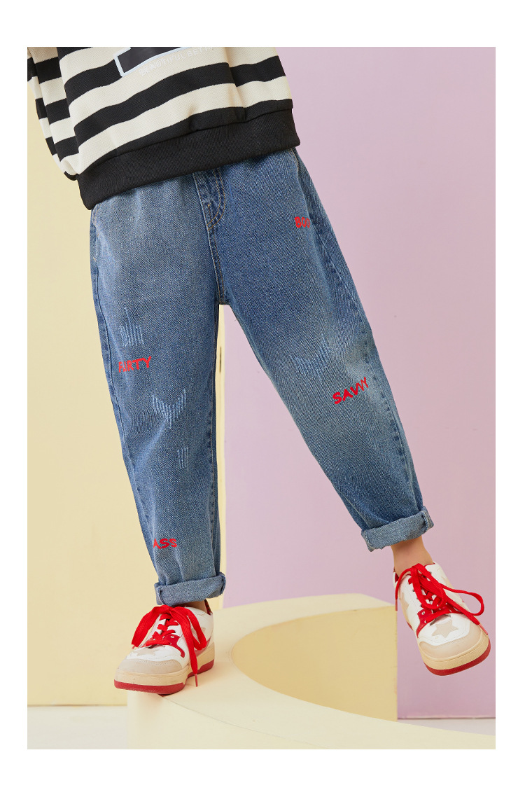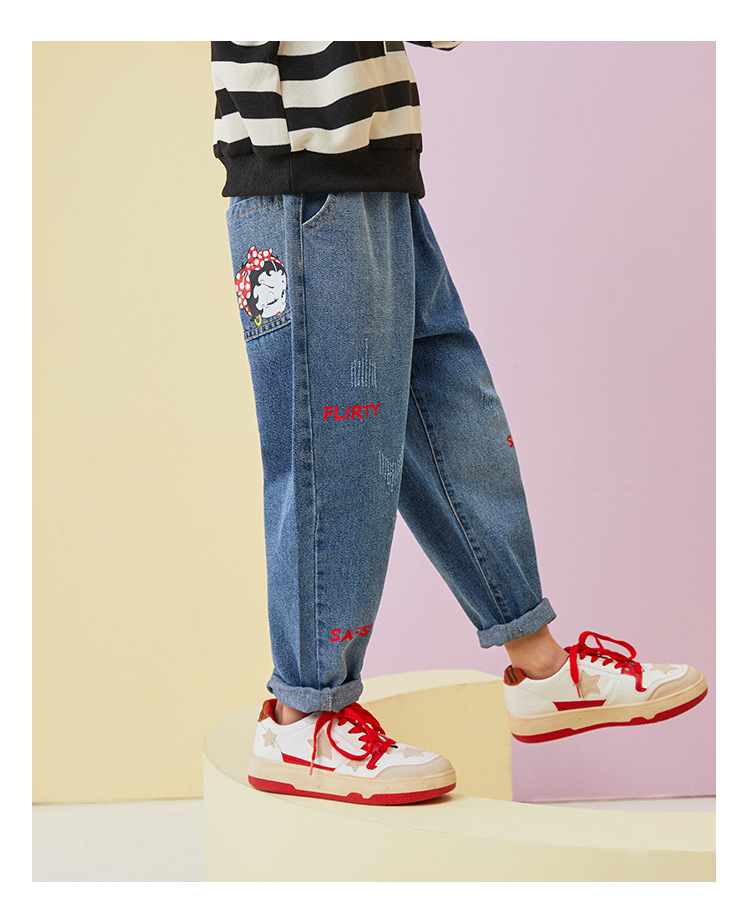 베티 아동복 가을 겨울 여아 스트레이트 데님 팬츠 2024 한국판 여아용 가을 긴바지 플리스 안감스토어 가기