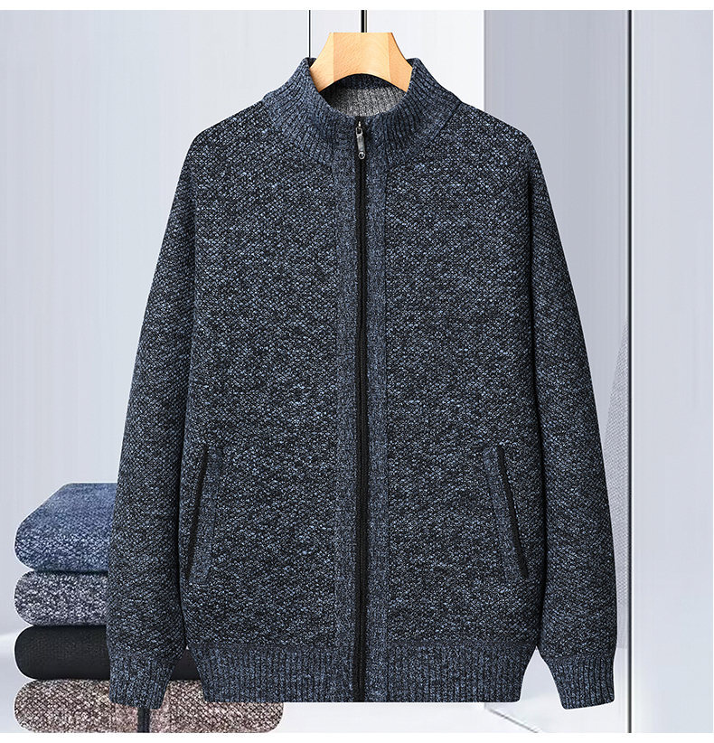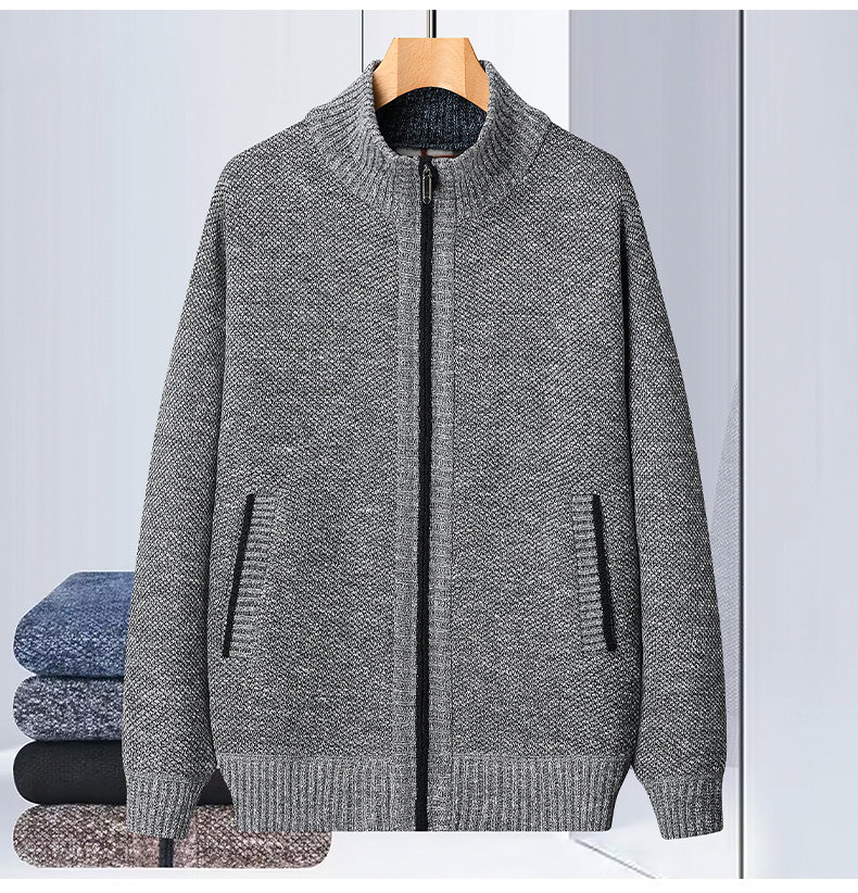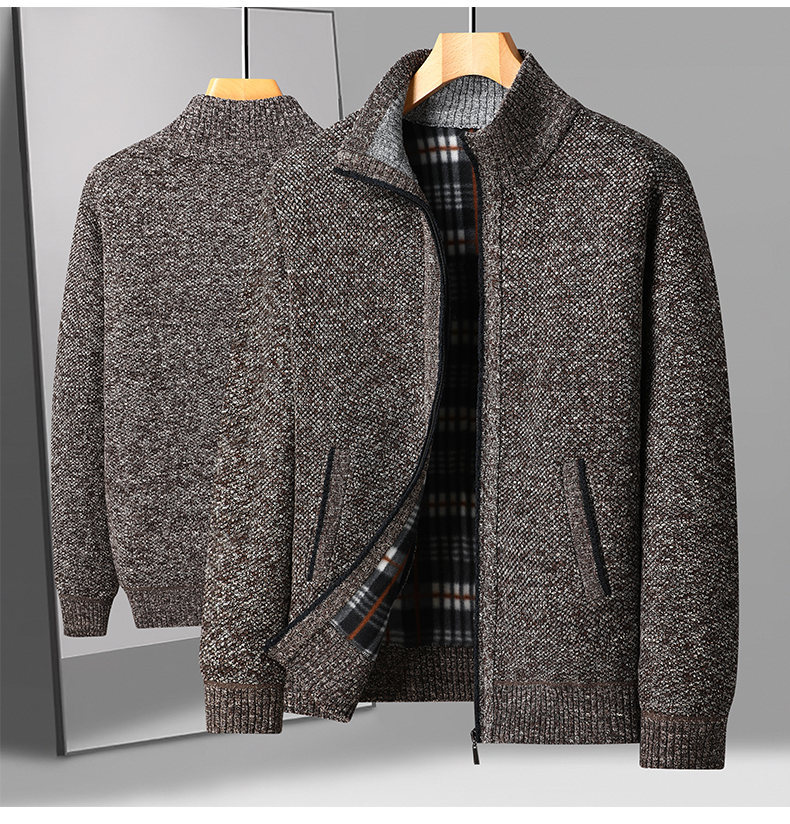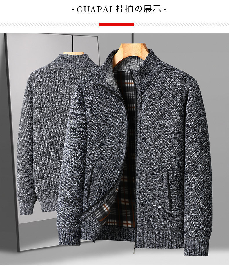스웨터 남성용 가을과 겨울 기모 두꺼운 외부 착용 느슨한 플러스 사이즈 세련된 맞춤형 지퍼 니트 카디건 재킷