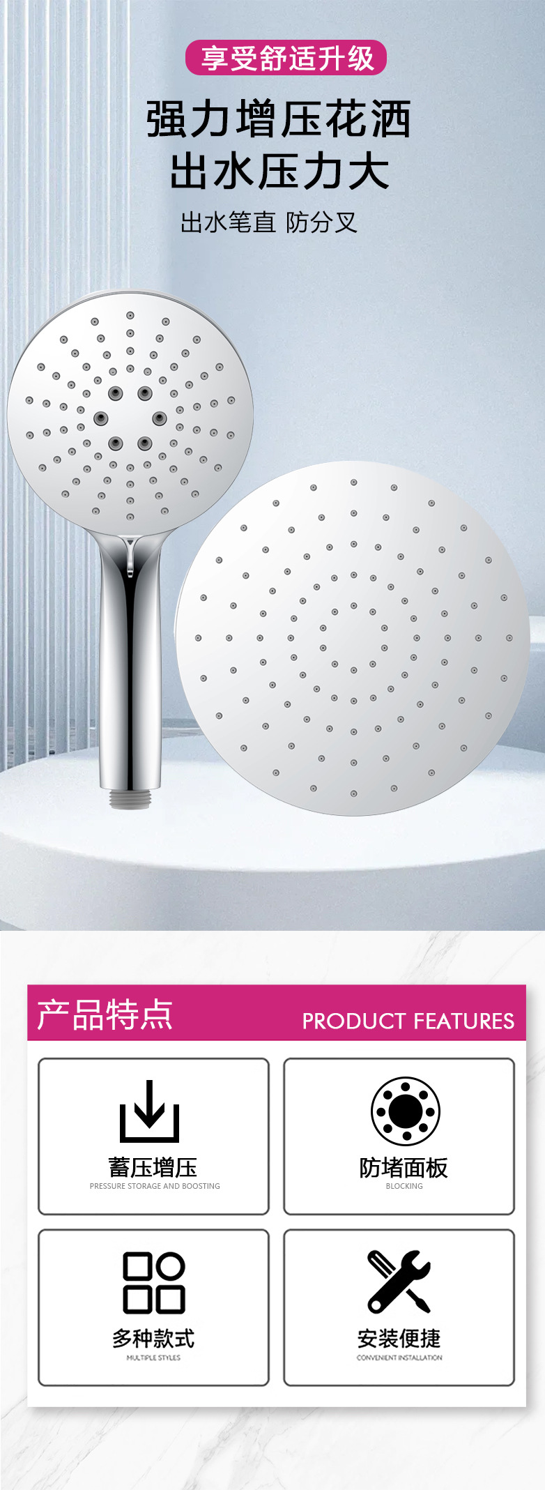 Shangou 가압 샤워 헤드 탑 스프레이 대형 샤워 헤드 가압 싱글 헤드 샤워 가정용 샤워 헤드 샤워