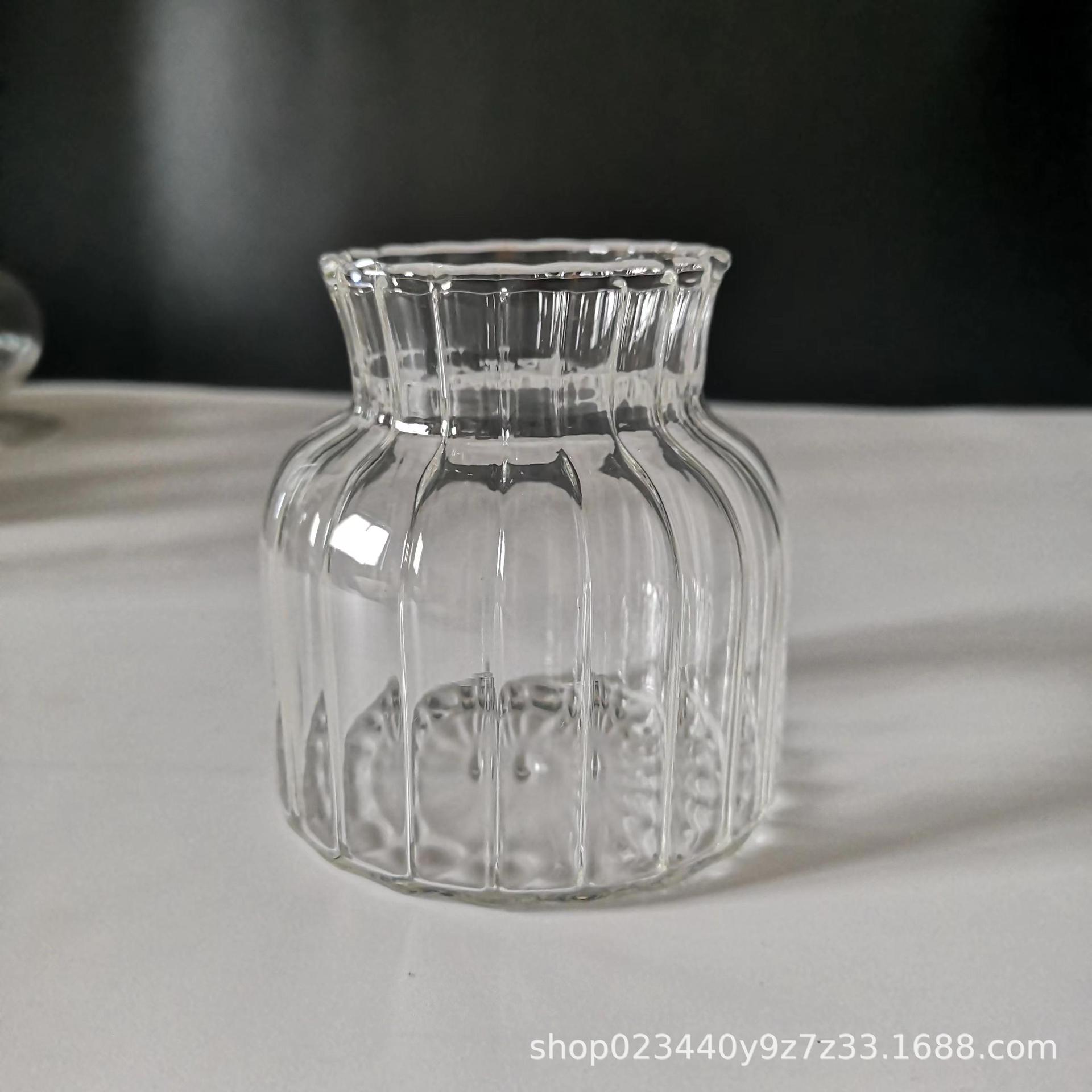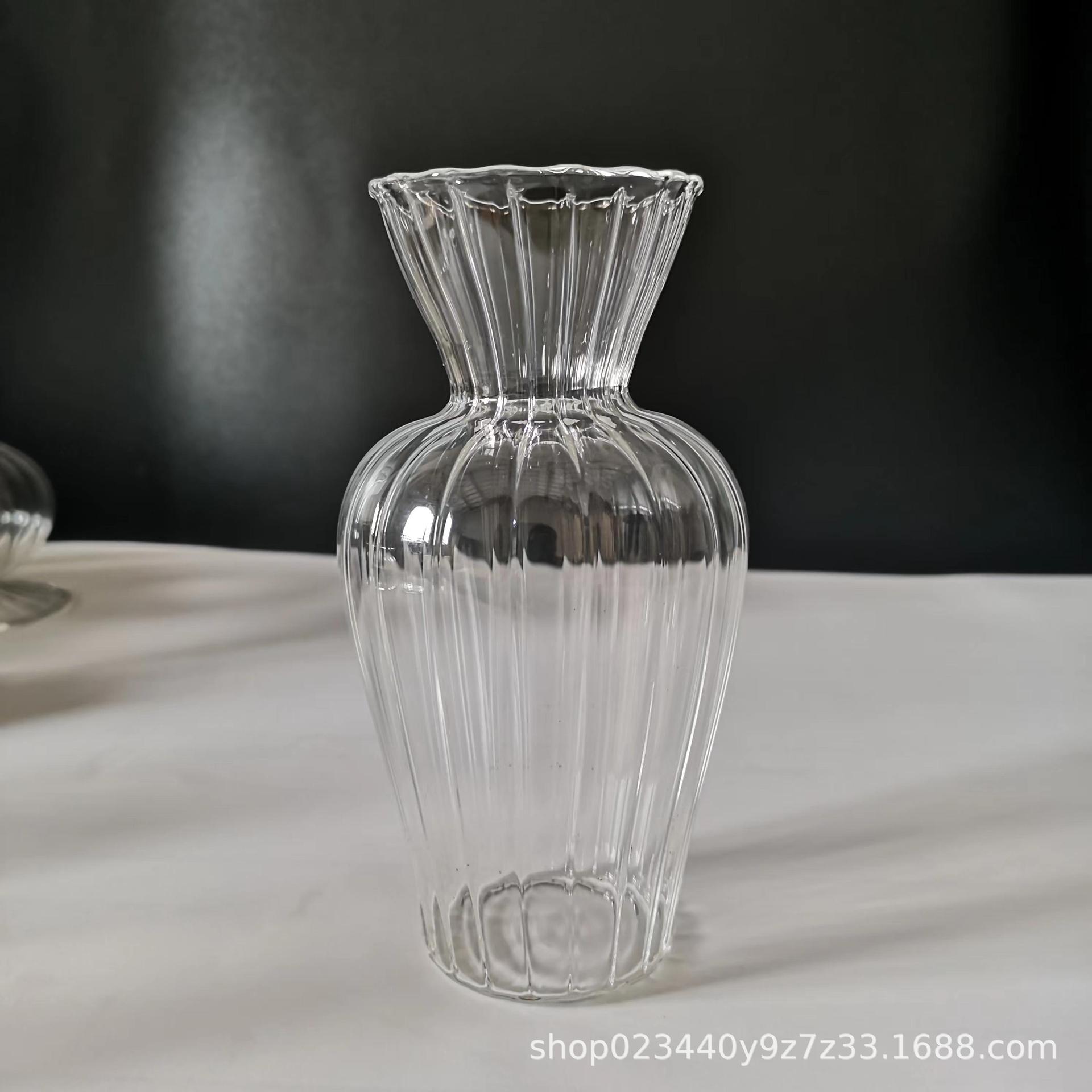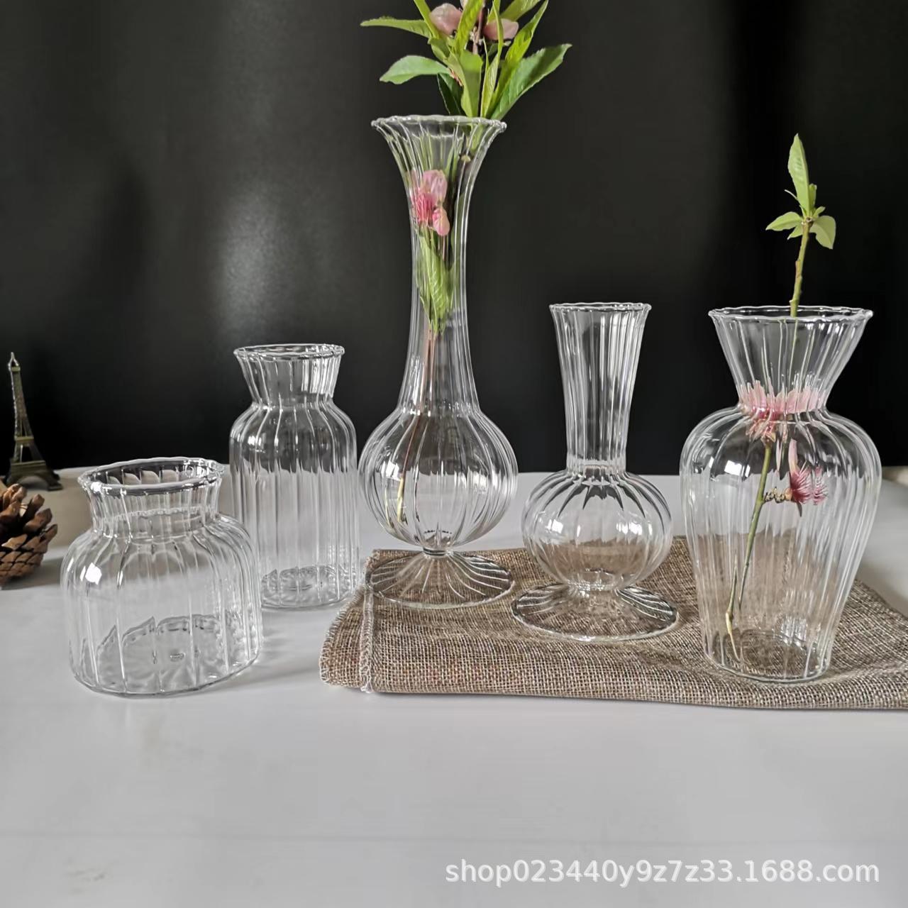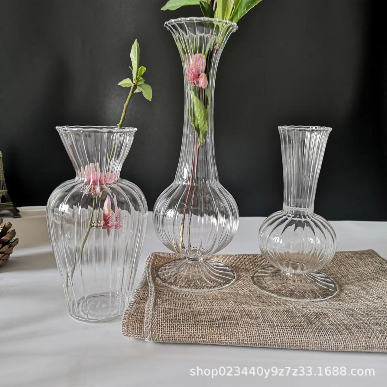 투명한 수경 줄무늬 꽃병 북유럽 유리 꽃병 신선한 말린 꽃 꽃 거실 장식 꽃병 장식품스토어 가기
