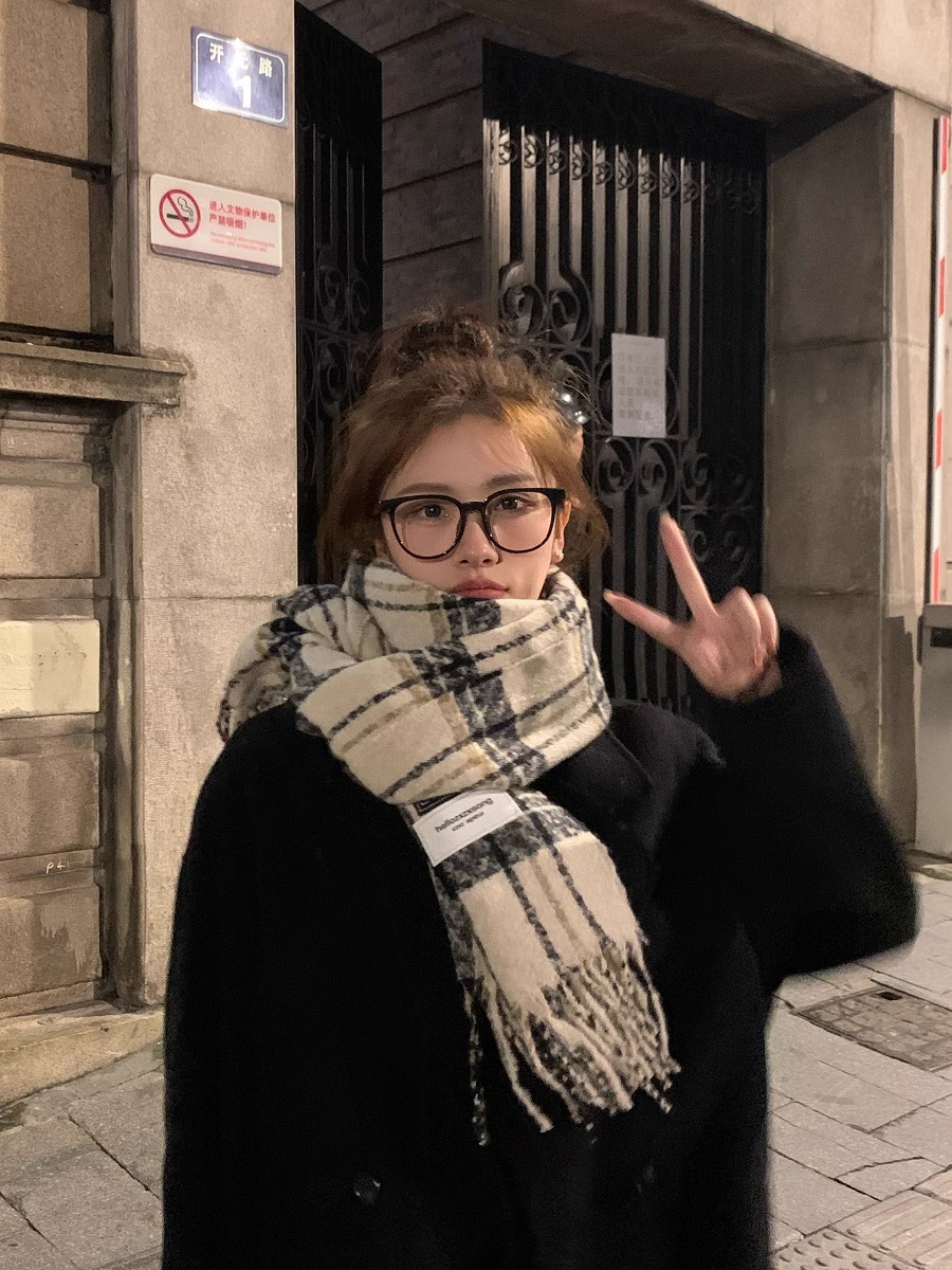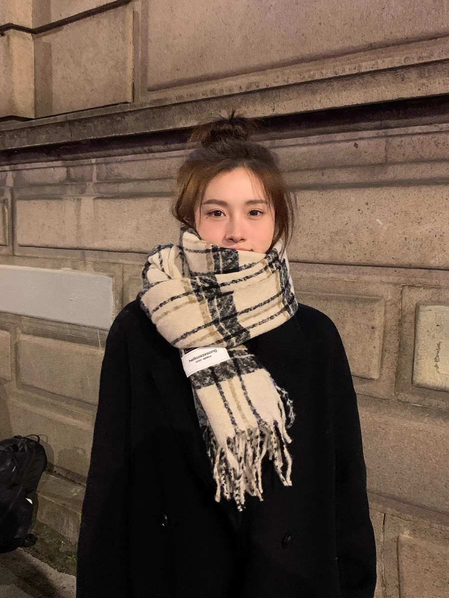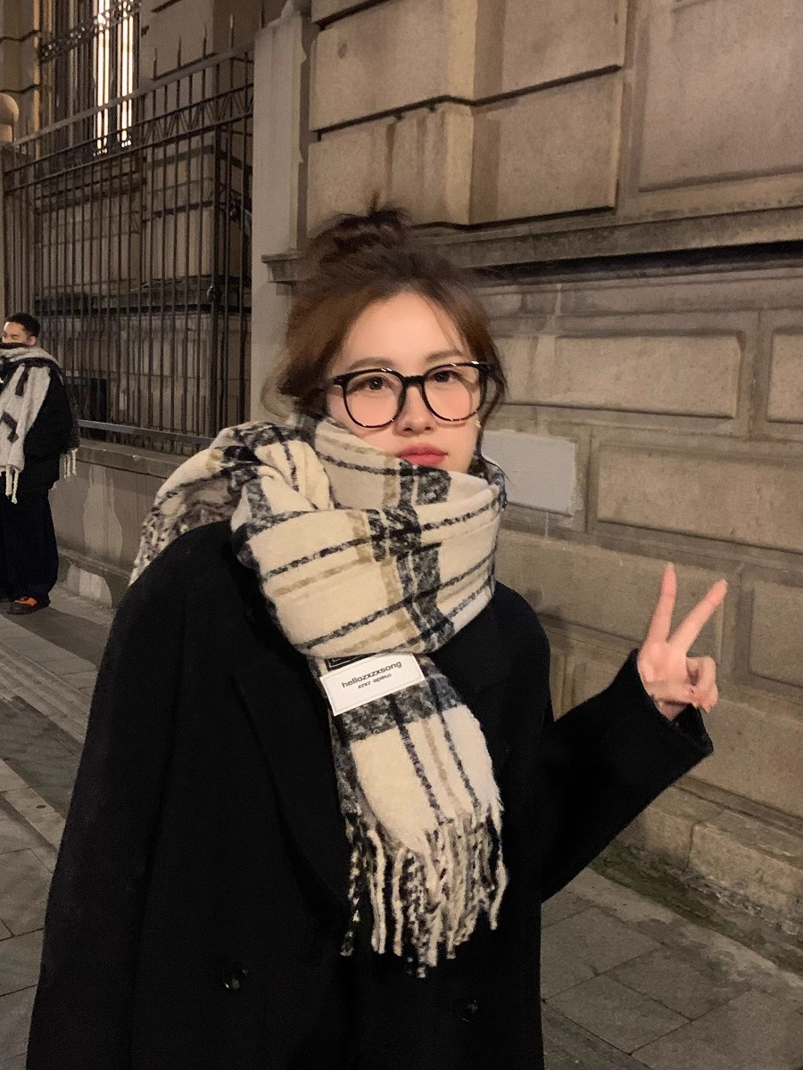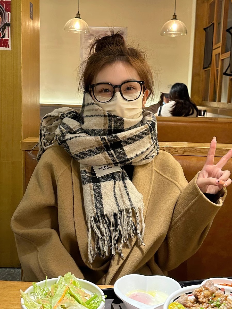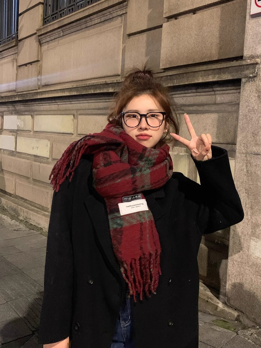 가을과 겨울 한국 스타일 스카프 여성 인터넷 연예인 새로운 도착 격자 무늬 술 올매치 빈티지 두꺼운 학생 스카프 목도리 트렌디스토어 가기