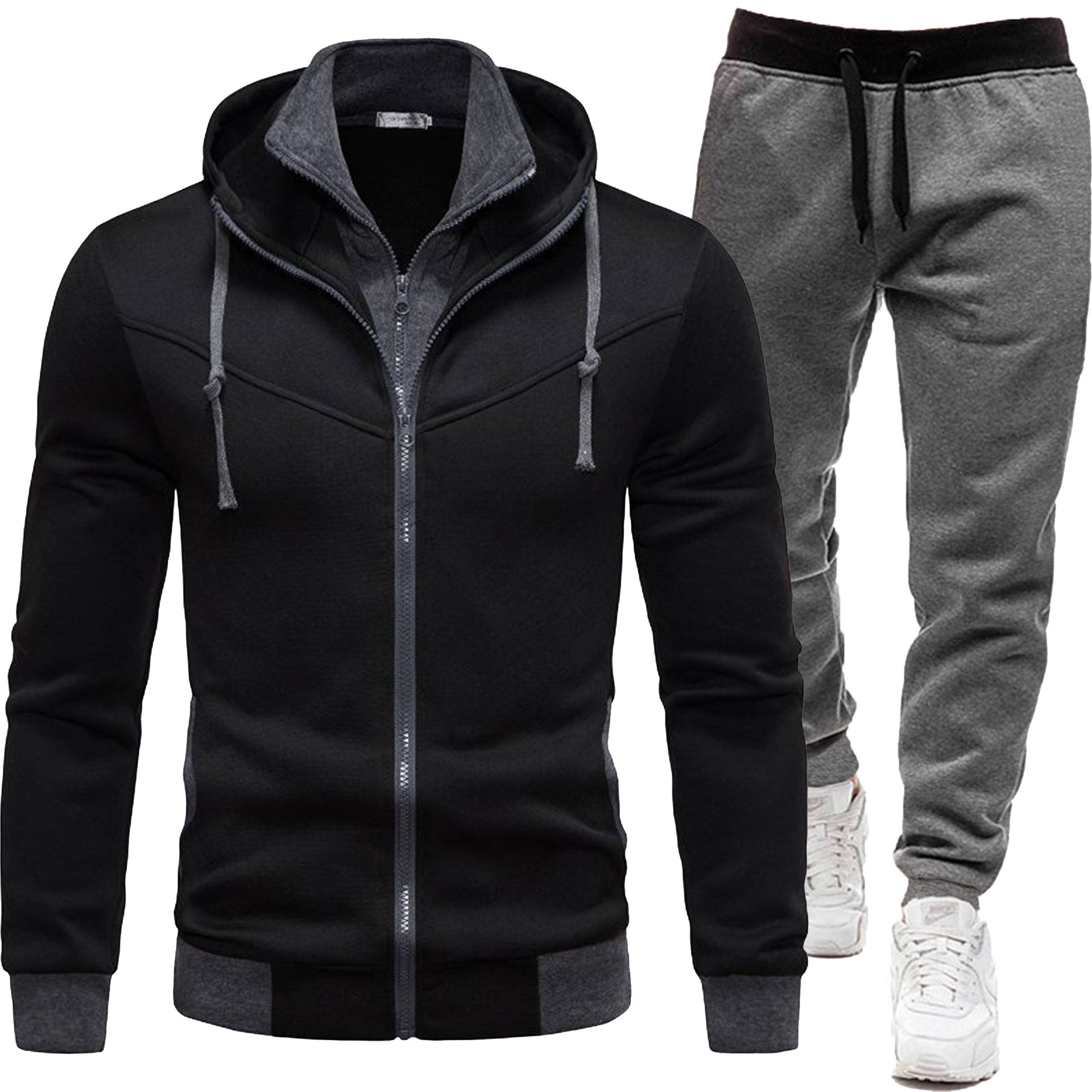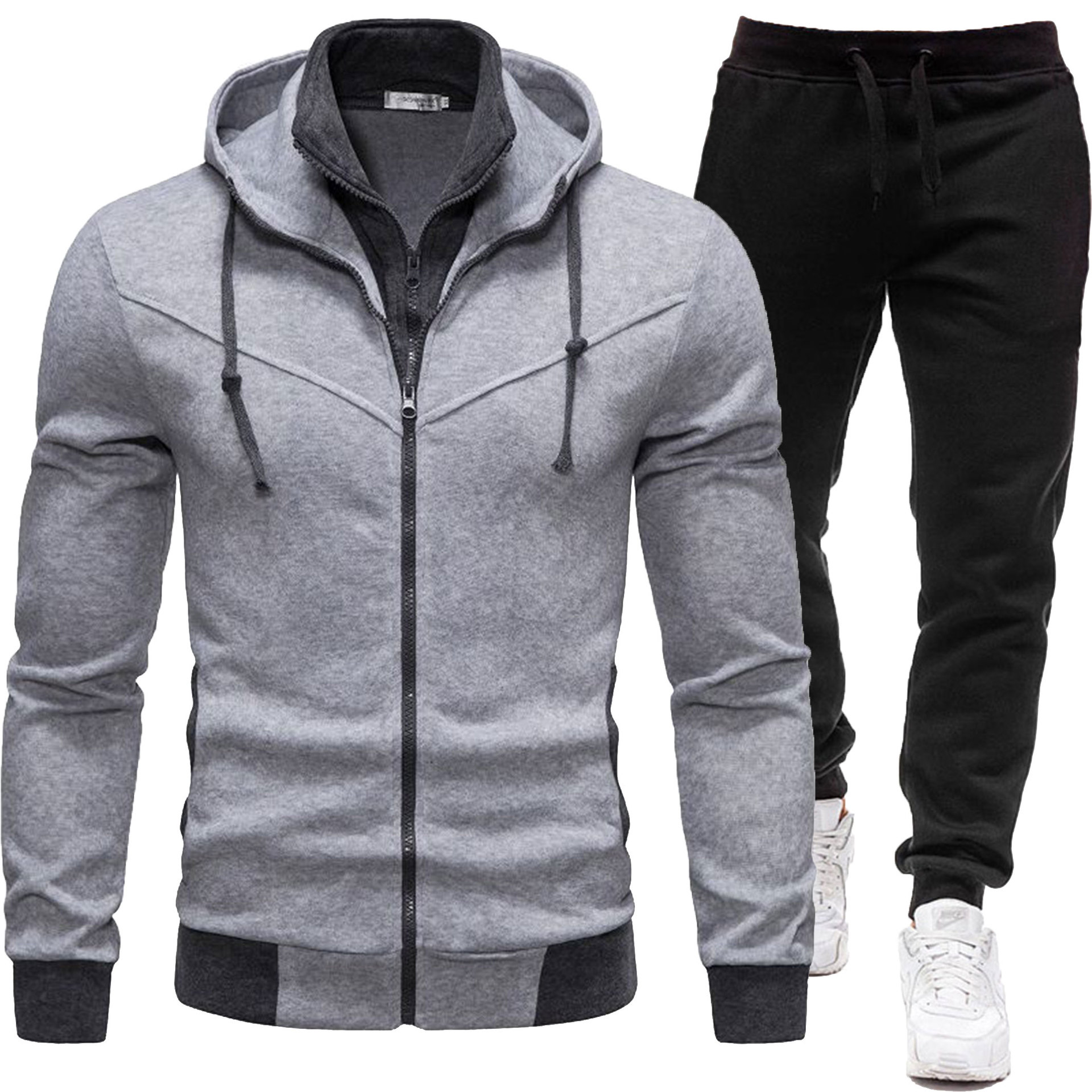 2024 새로운 가을 및 겨울 스포츠 스티칭 코트 캐주얼 긴팔 바지 후드 남성 스포츠 세트 투피스 세트