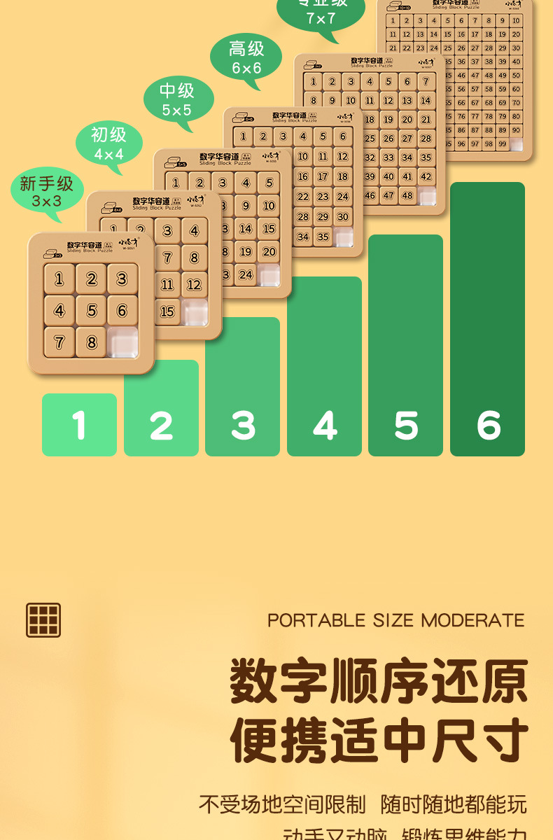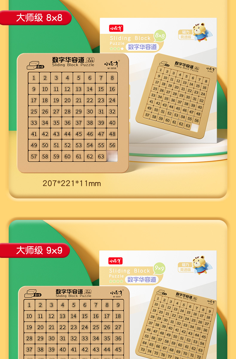 디지털 Huarong Road 어린이 슬라이딩 직소 퍼즐 교육 완구 논리적 사고 Jiugongge 수학 게임 Huarong Road스토어 가기