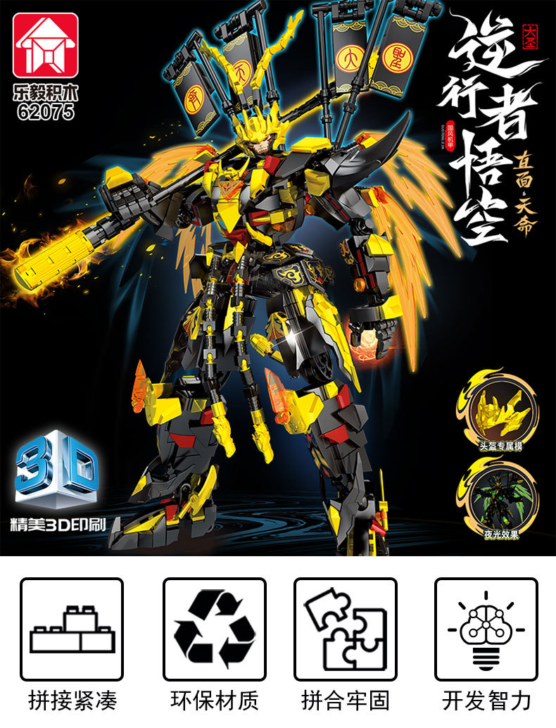 레고 메카 우콩 그레이트 세이지 조립 로봇 소년 장난감 선물 크로스 보드와 호환되는 Le Yi Guochao 바람