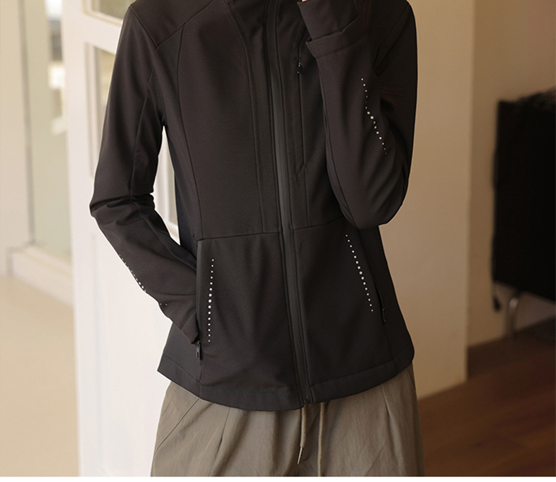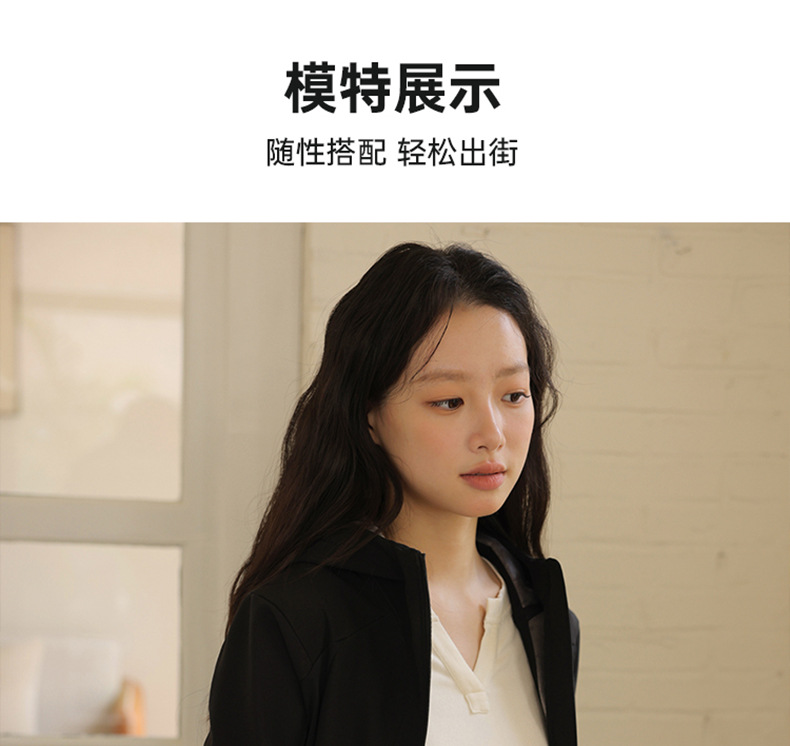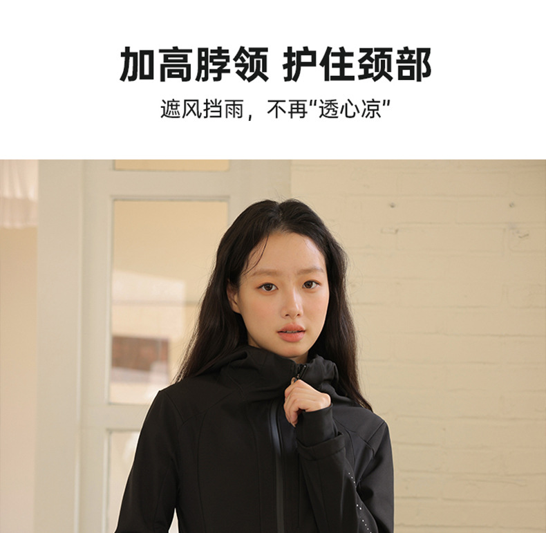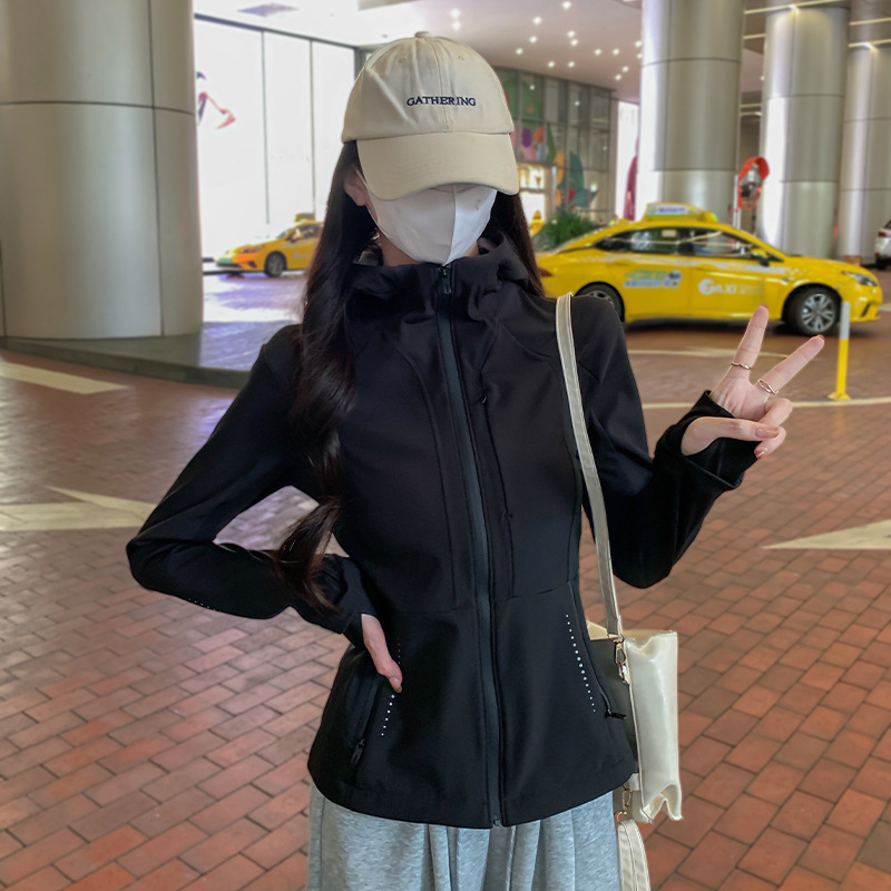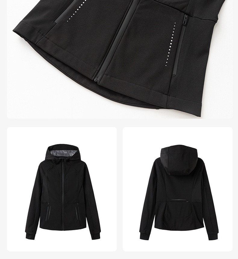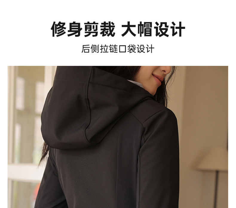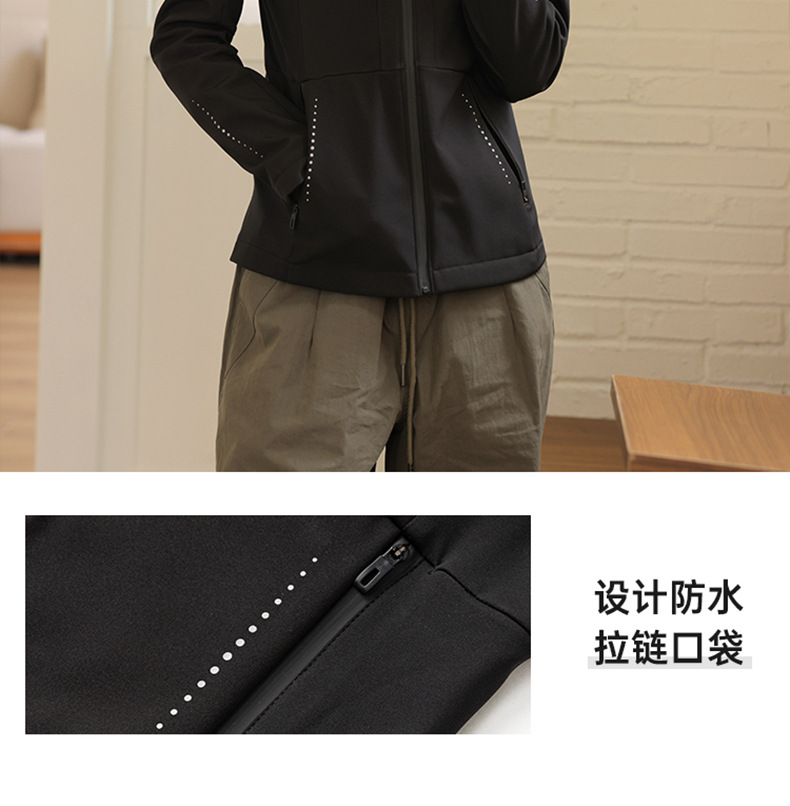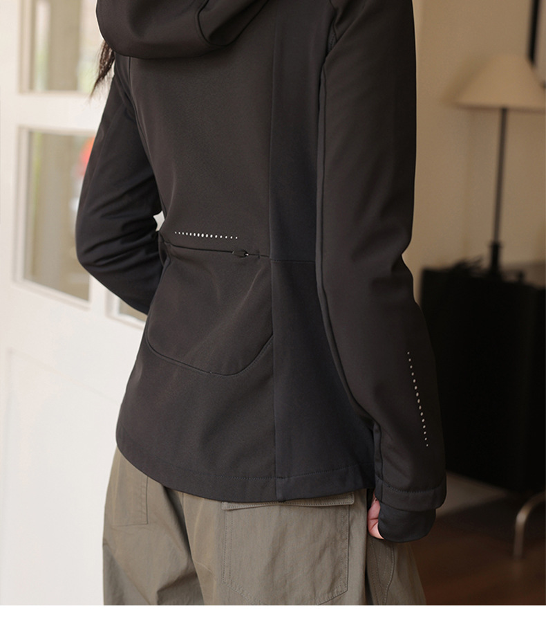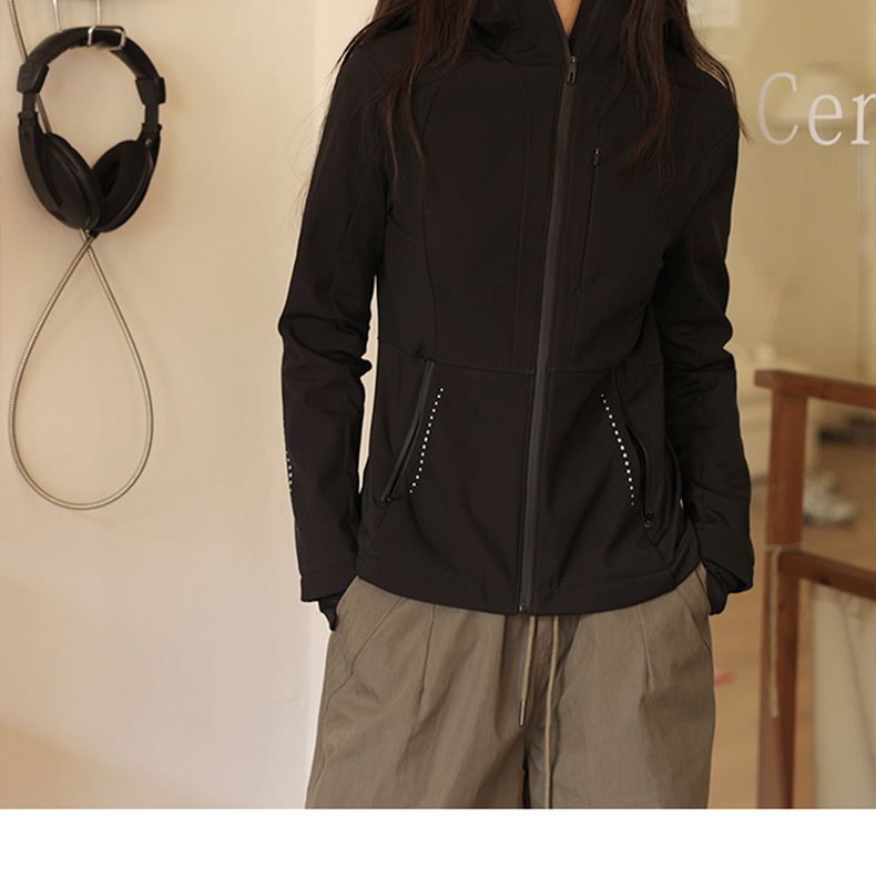 블랙 소프트 쉘 재킷 여성 봄 가을 겨울 슬림 핏 재킷 기모 후드 카디건 야외 스포츠 탑