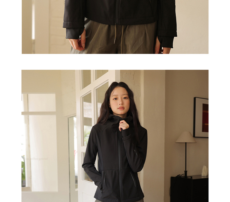 블랙 소프트 쉘 재킷 여성 봄 가을 겨울 슬림 핏 재킷 기모 후드 카디건 야외 스포츠 탑스토어 가기