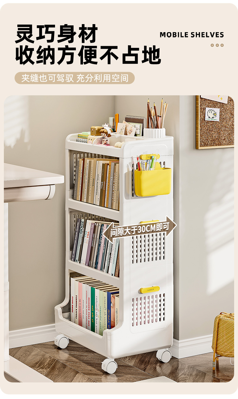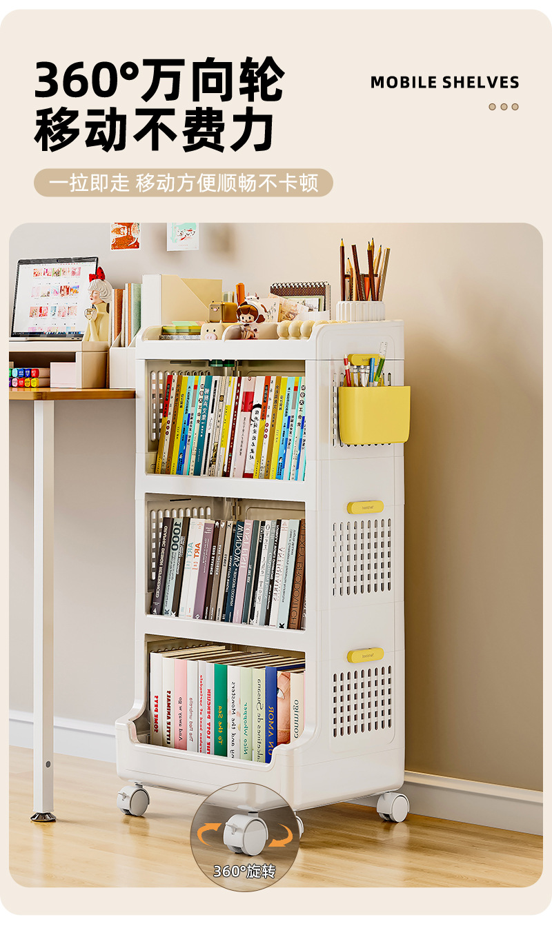 움직일 수있는 사무실 책상 아래 보관 랙 학생 기숙사 책장 보관 인공물 바닥 다층 책 보관 랙스토어 가기