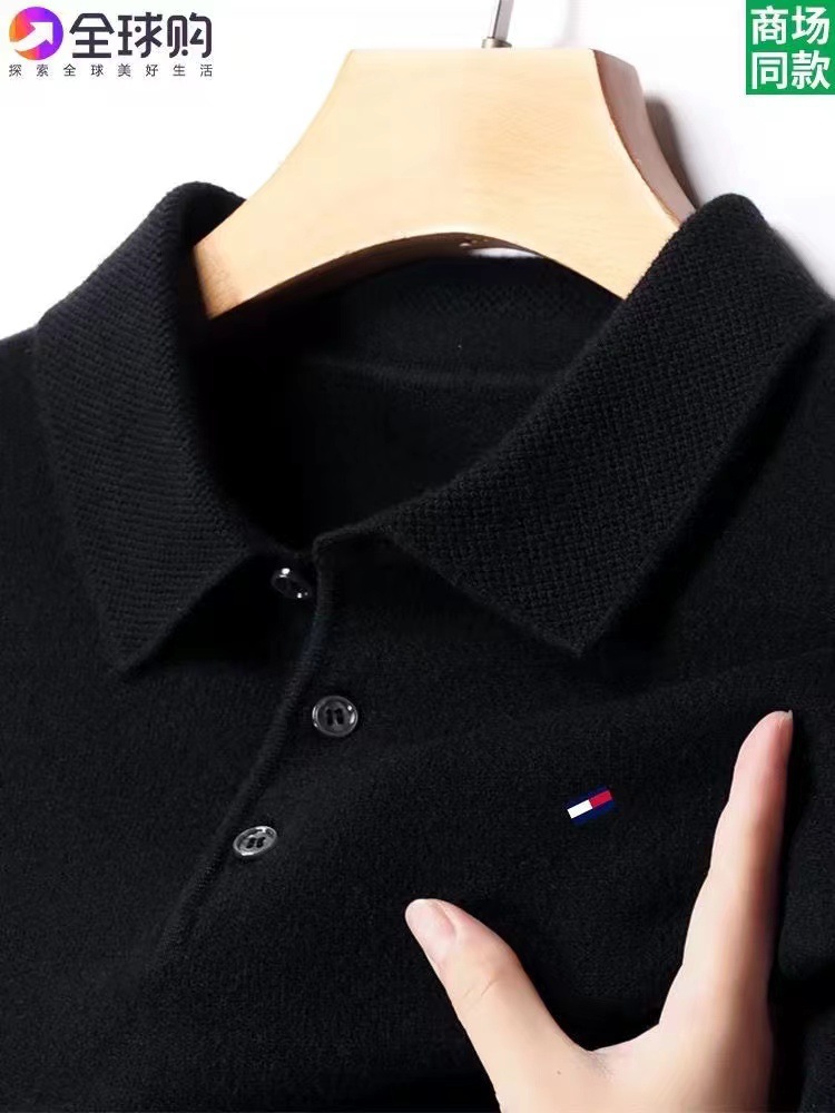 토미 양모 스웨터 남성용 플러스 사이즈 보온 라펠 니트 스웨터 캐시미어 스웨터스토어 가기