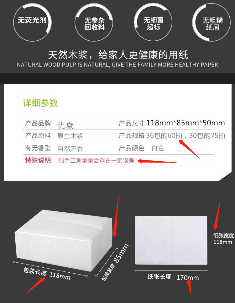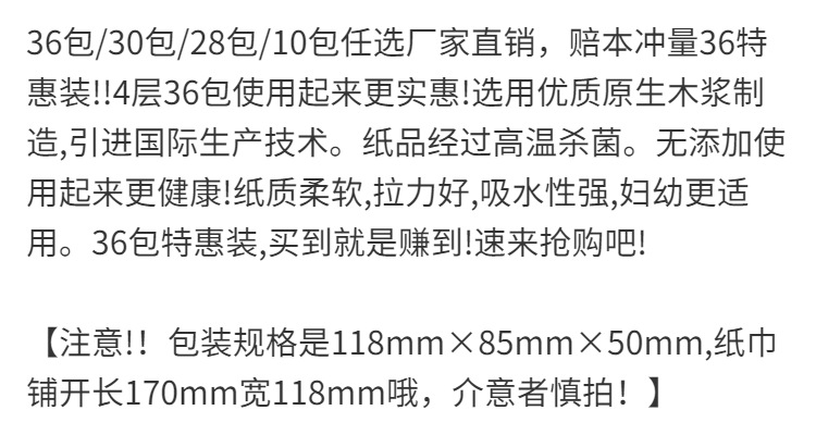 목재 펄프 종이 상자 36 팩 10 팩 4 층 특수 홈 오피스 종이 수건 냅킨 티슈 위생스토어 가기