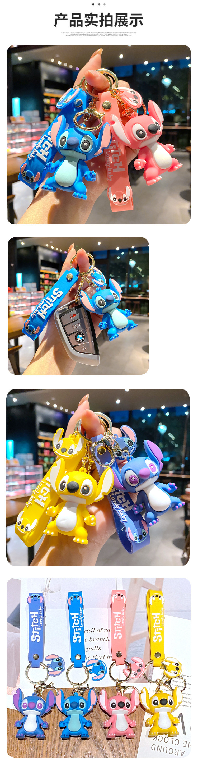 만화 스티치 키 체인 가방 펜던트 인터넷 축하 자동차 키 체인 커플의 생일 선물스토어 가기