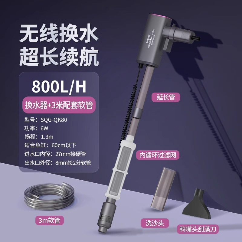 • [리튬 배터리 충전식 다단계 조절 가능 6W] - 유량 800L/H (호스 3m 개 포함)