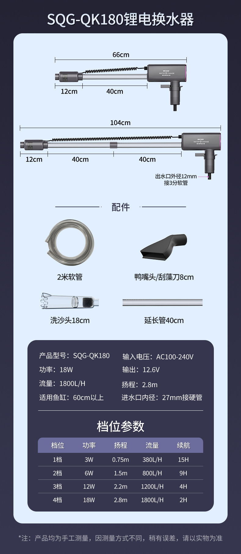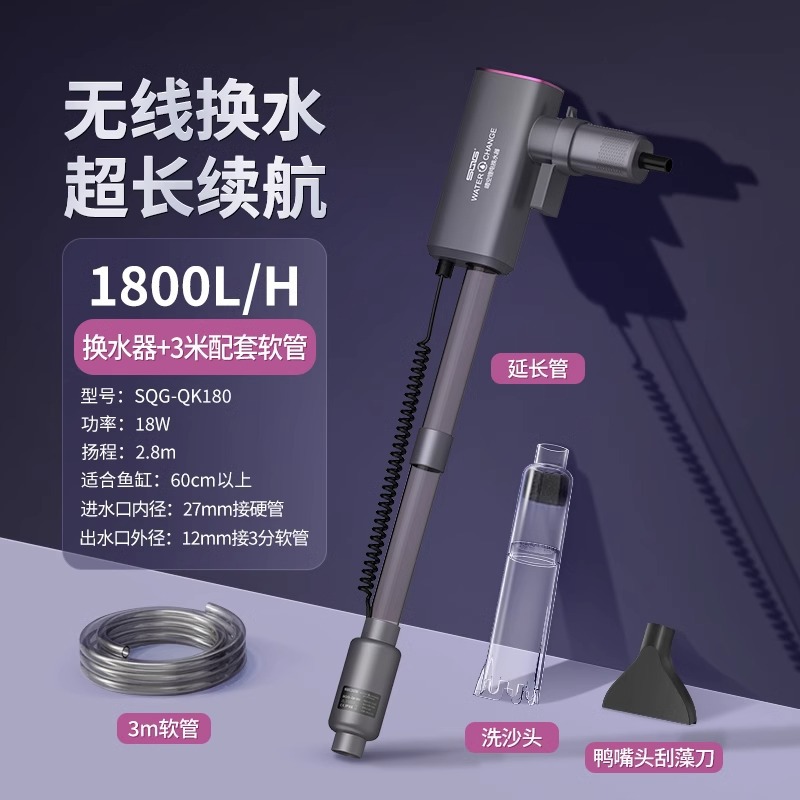 • [리튬 배터리 충전식, 다중 속도 조절 가능 18W] - 유량 1800L/H( 3m 호스 포함)