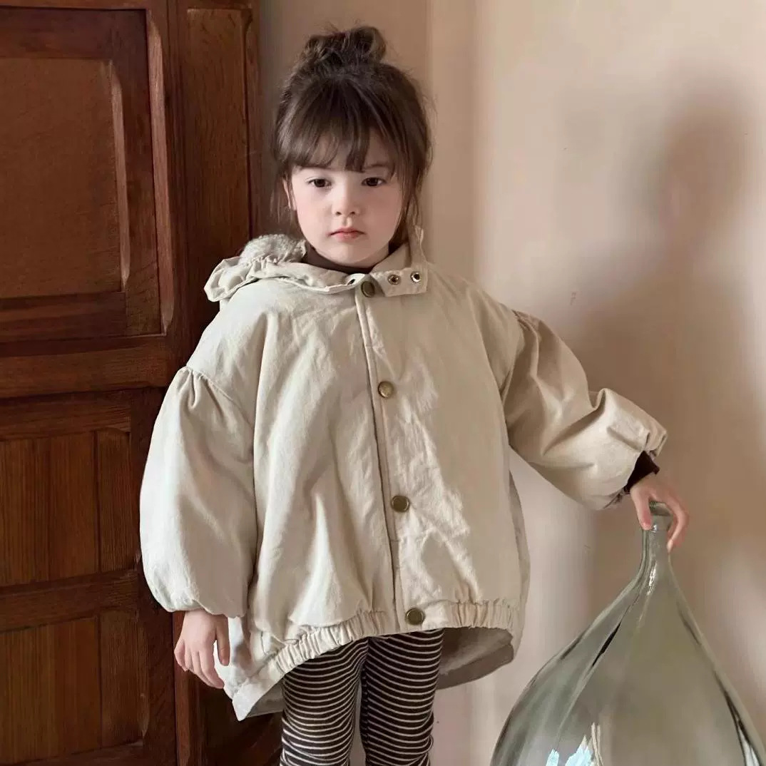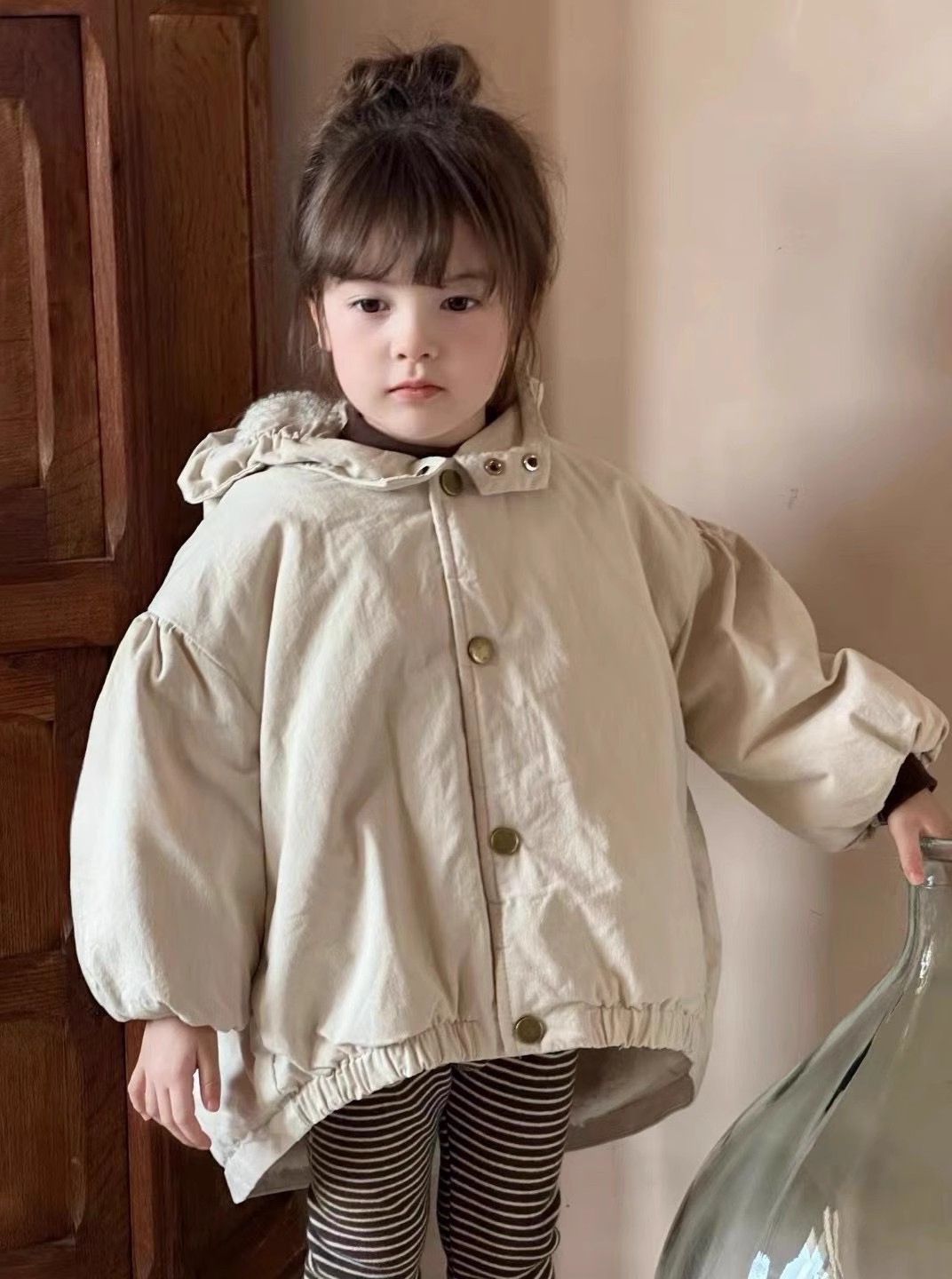 여아용 면 코트 앞단 짧고 뒷단 긴 후드 코트 두꺼운 외투 2025 겨울 신상품 수출용 아동복 도매