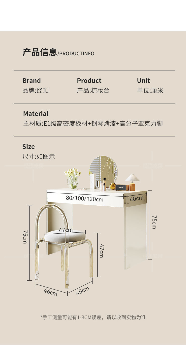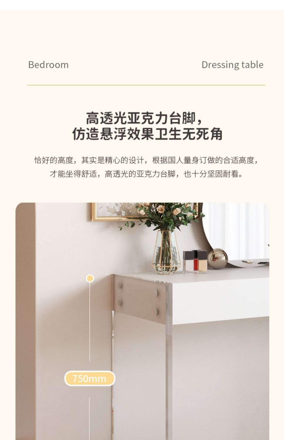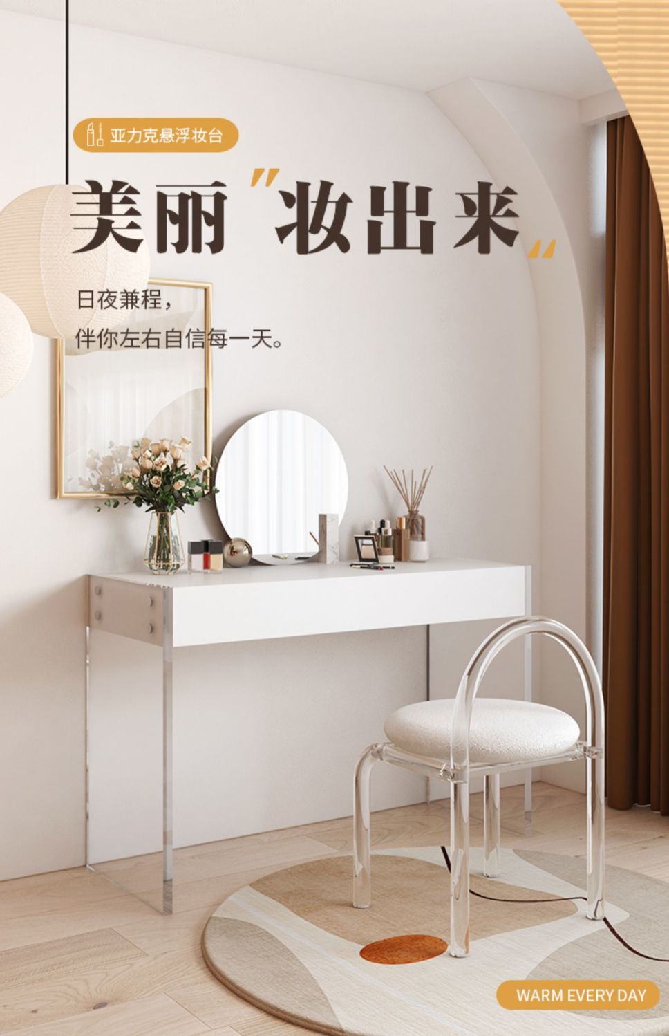 아크릴 크림 스타일 드레싱 테이블 프랑스 스타일 인터넷 인기있는 Ins 작은 빛 럭셔리 침실 메이크업 테이블 현대 난초스토어 가기