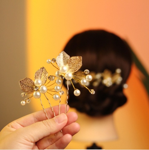 한국식 헤어 빗 신부 헤어 액세서리 꽃 헤어 U 자형 헤어 클립 달콤한 꽃 모조 다이아몬드 머리핀 헤어 핀 헤어 핀
