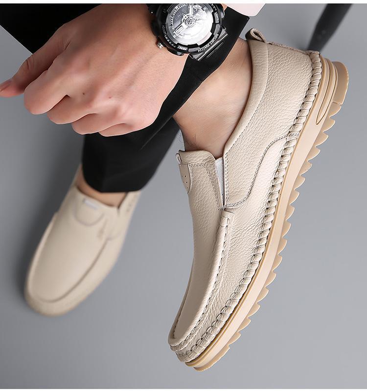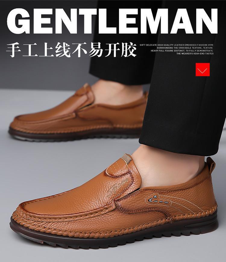 가죽 신발 남성 봄 Cowhide 소프트 밑창 미끄럼 방지 헤드 레이어 Cowhide 중년 및 노인 아빠 신발을위한 로우 탑 캐주얼 남성 신발스토어 가기