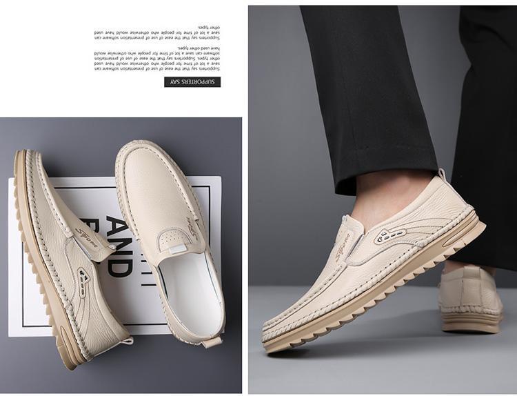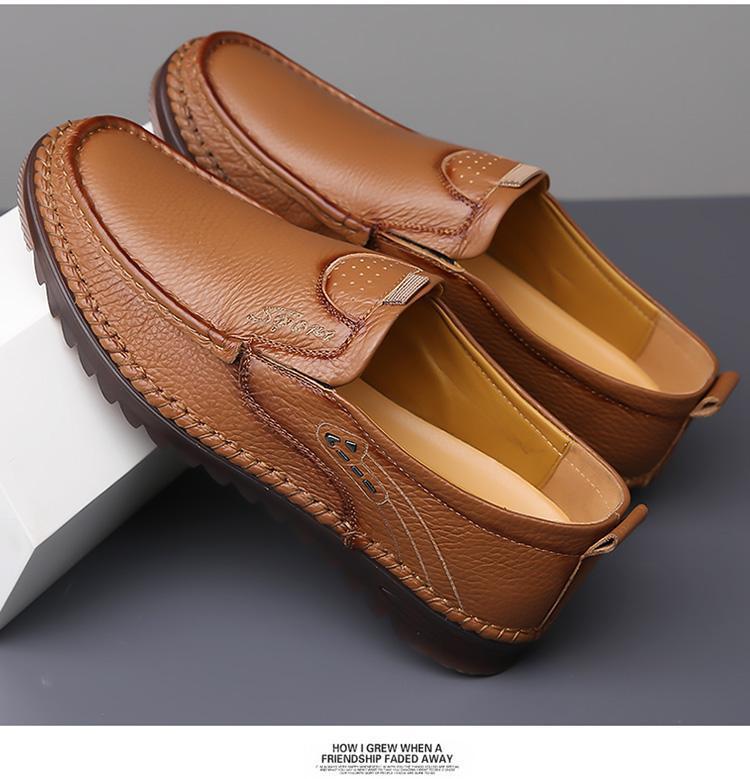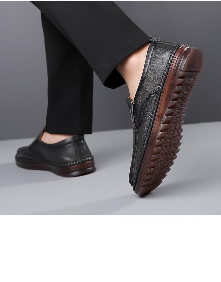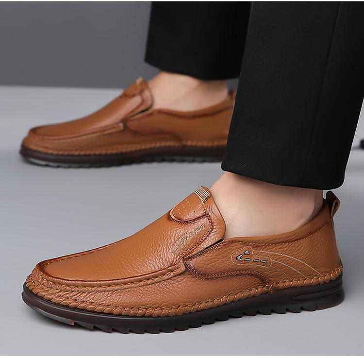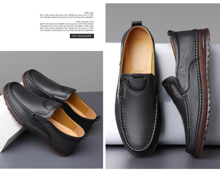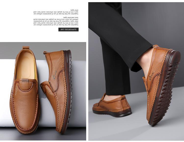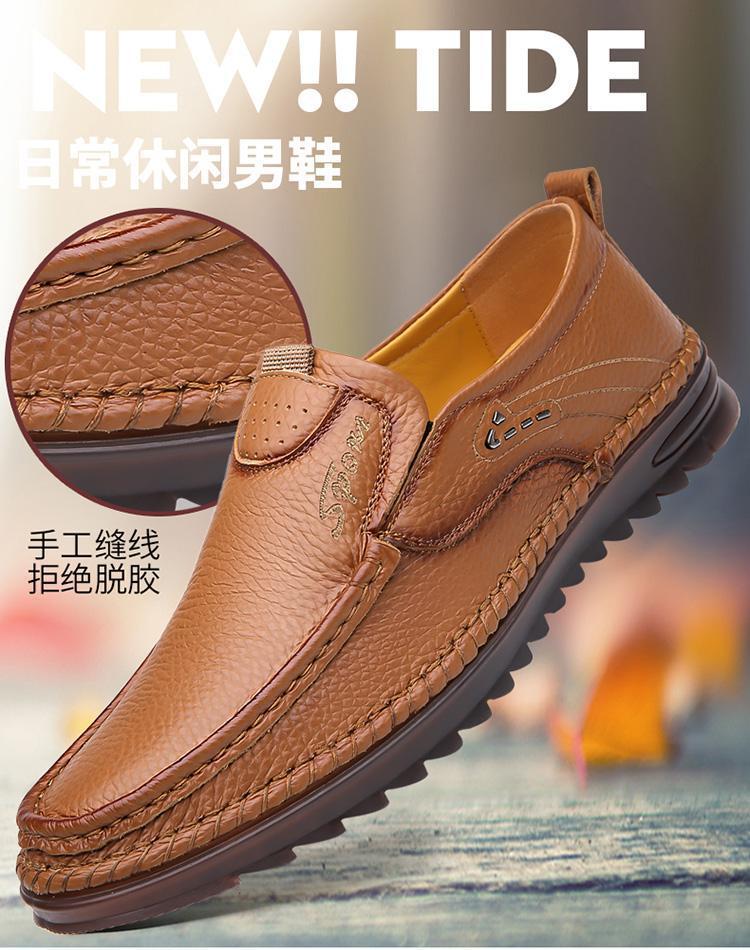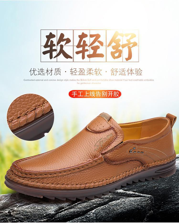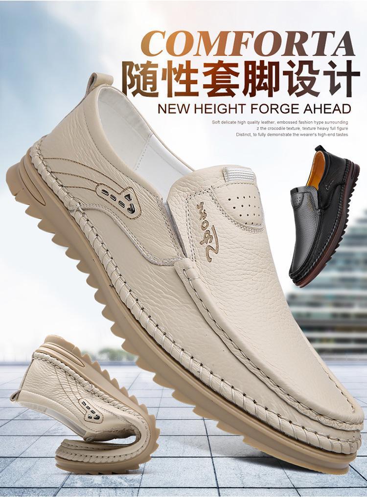 가죽 신발 남성 봄 Cowhide 소프트 밑창 미끄럼 방지 헤드 레이어 Cowhide 중년 및 노인 아빠 신발을위한 로우 탑 캐주얼 남성 신발