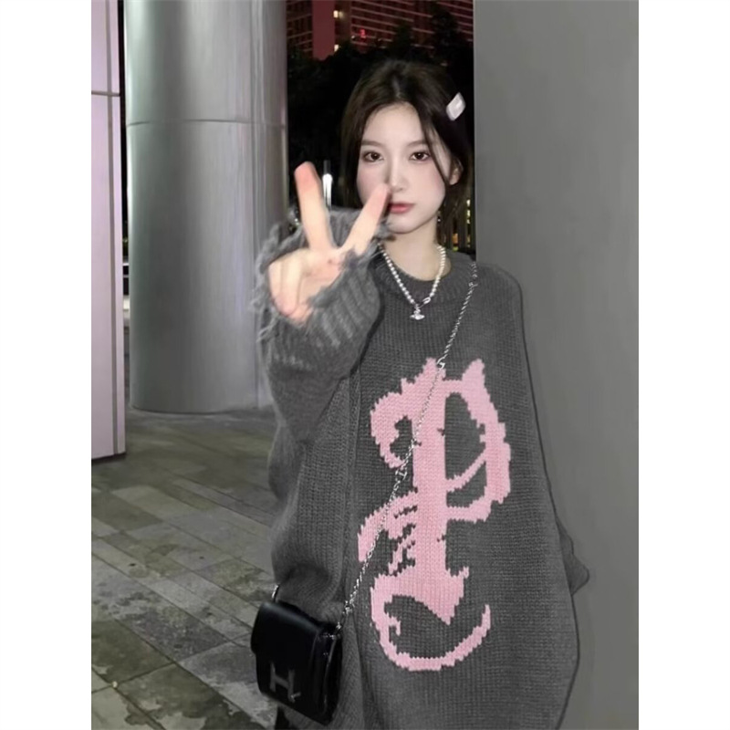 인터넷 연예인 패션 브랜드 Ins 니트 스웨터 편지 하이 스트리트 불규칙한 파괴 풀린 올 매치 남자 크루 넥 스웨터스토어 가기