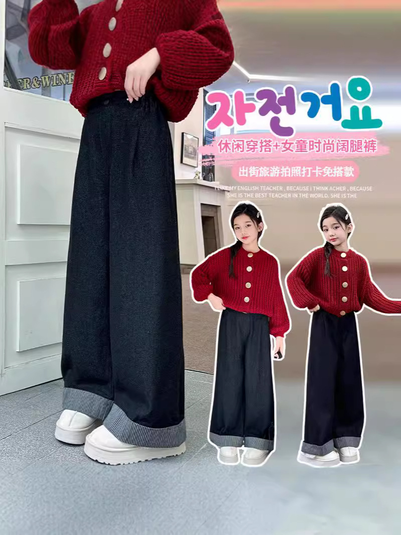 소녀 청바지 가을 착용 한국 스타일 소녀 유행 느슨한 넓은 다리 바지 어린이 봄과 가을 컬링 스트레이트 팬츠