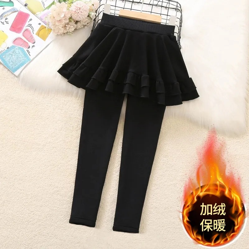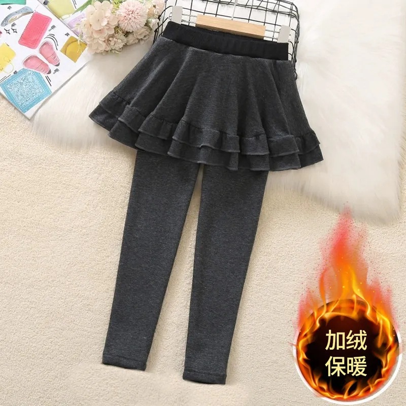 여자 레깅스 아우터 겨울 새 서양식 패션 어린이 캐주얼 따뜻한 바지 기모 스커트 바지 가짜 투피스