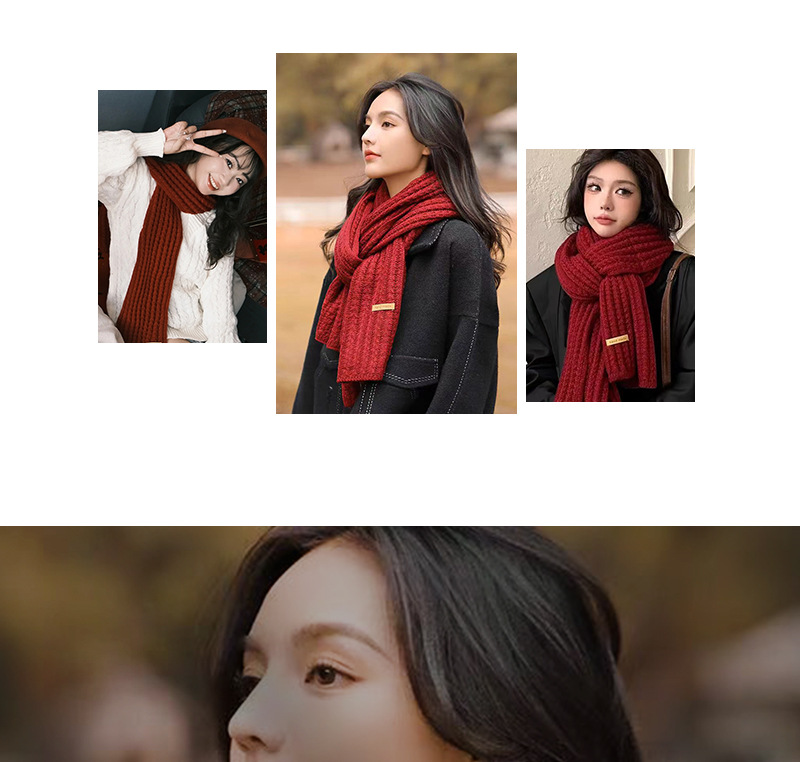 레드 스카프 여자 2024 년 새 가을 겨울 울 올매치 한국식 하이 엔드 생일 선물 니트 스카프 세트스토어 가기