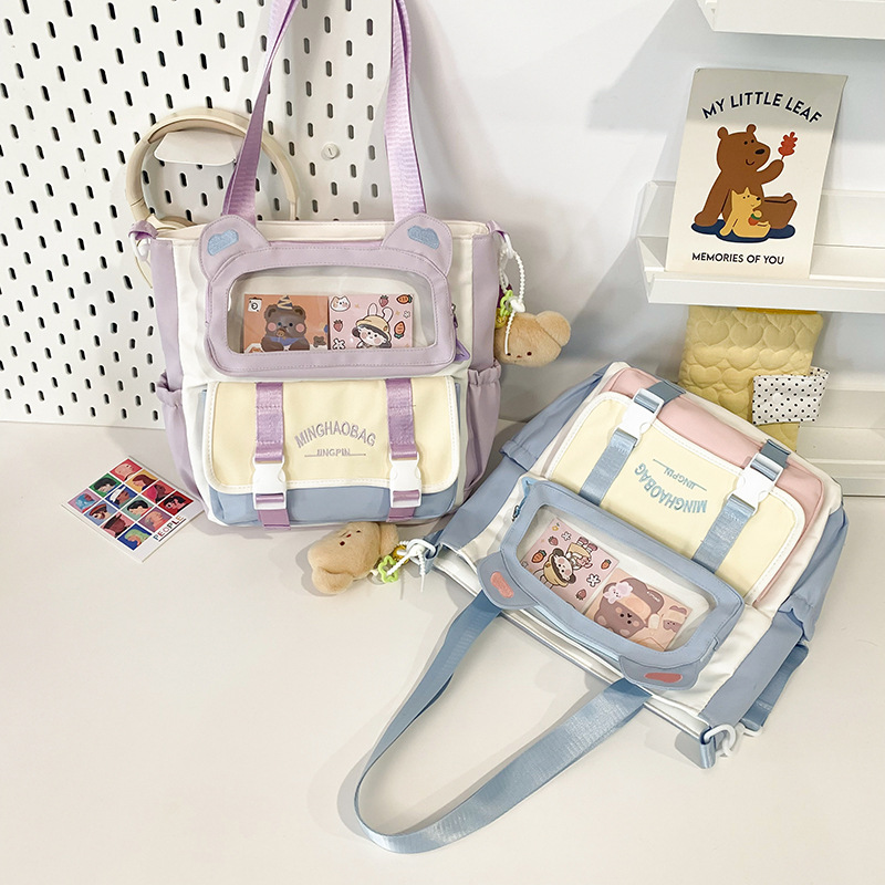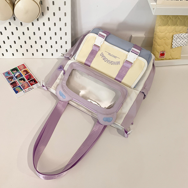 중학생을위한 고 가치 배낭 여성 일본 대학 스타일 색상 대비 배낭 투명 층 초등 학생을위한 대용량 스쿨 백스토어 가기