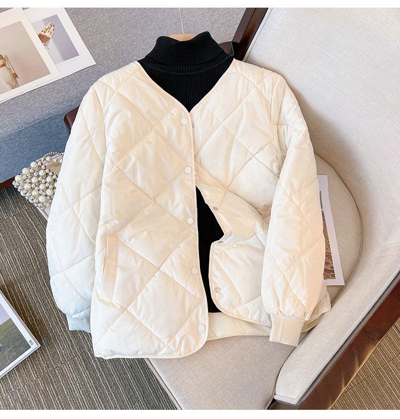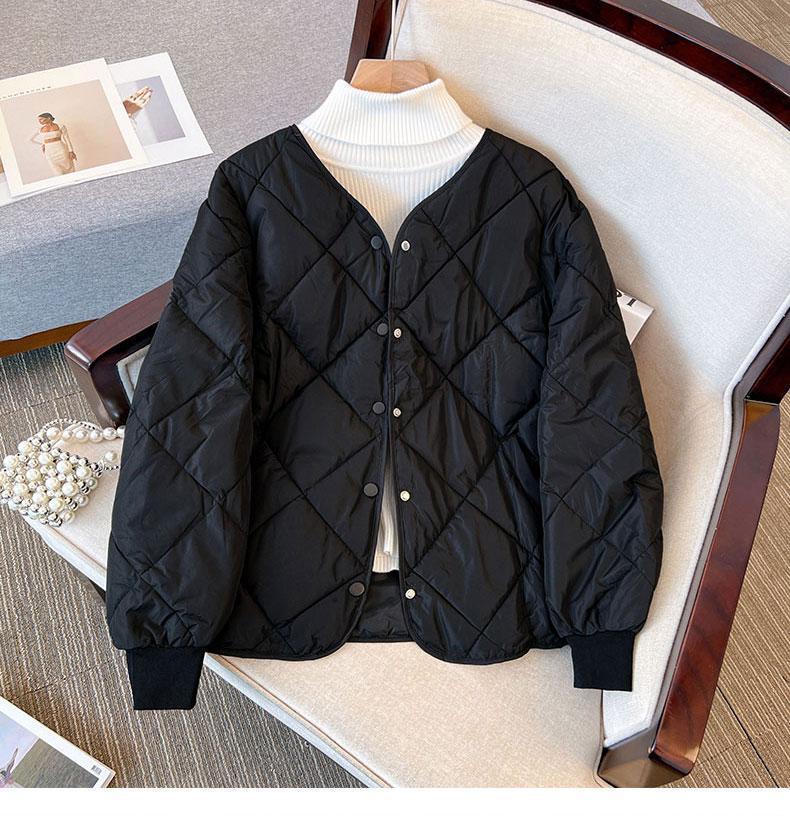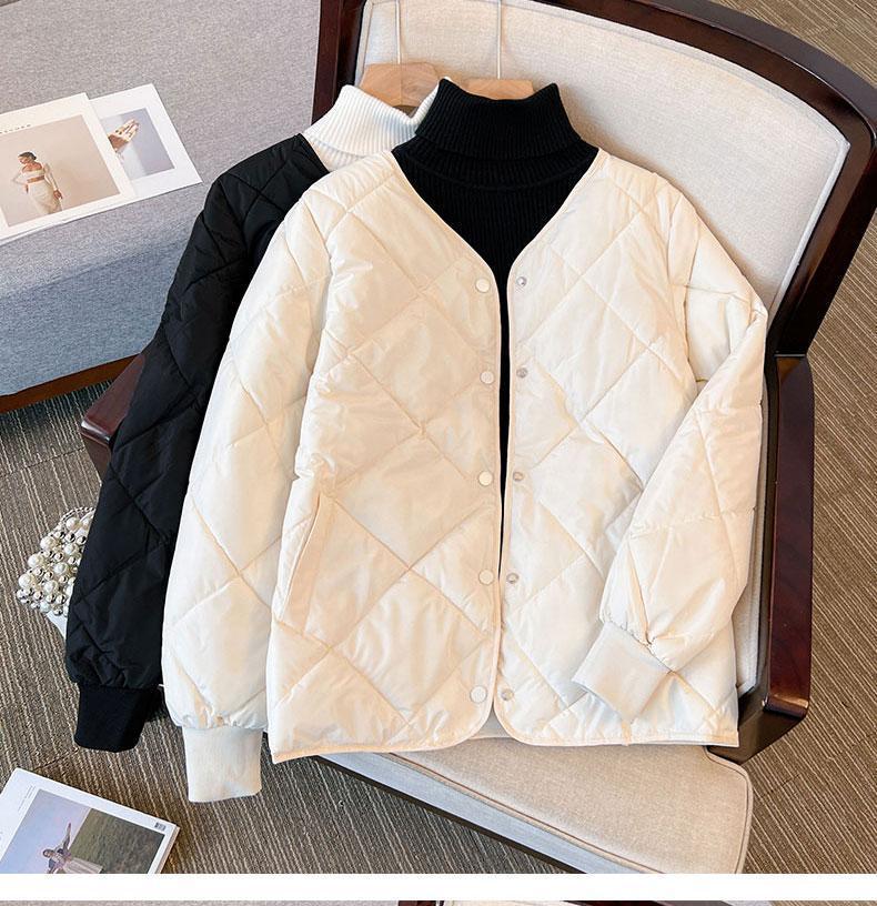 2022 년 새로운면 패딩 재킷 여성의 짧은 경량 작은 다이아몬드 모양면 패딩 재킷 코트 얇은 작은 향기로운 스타일 란지스토어 가기