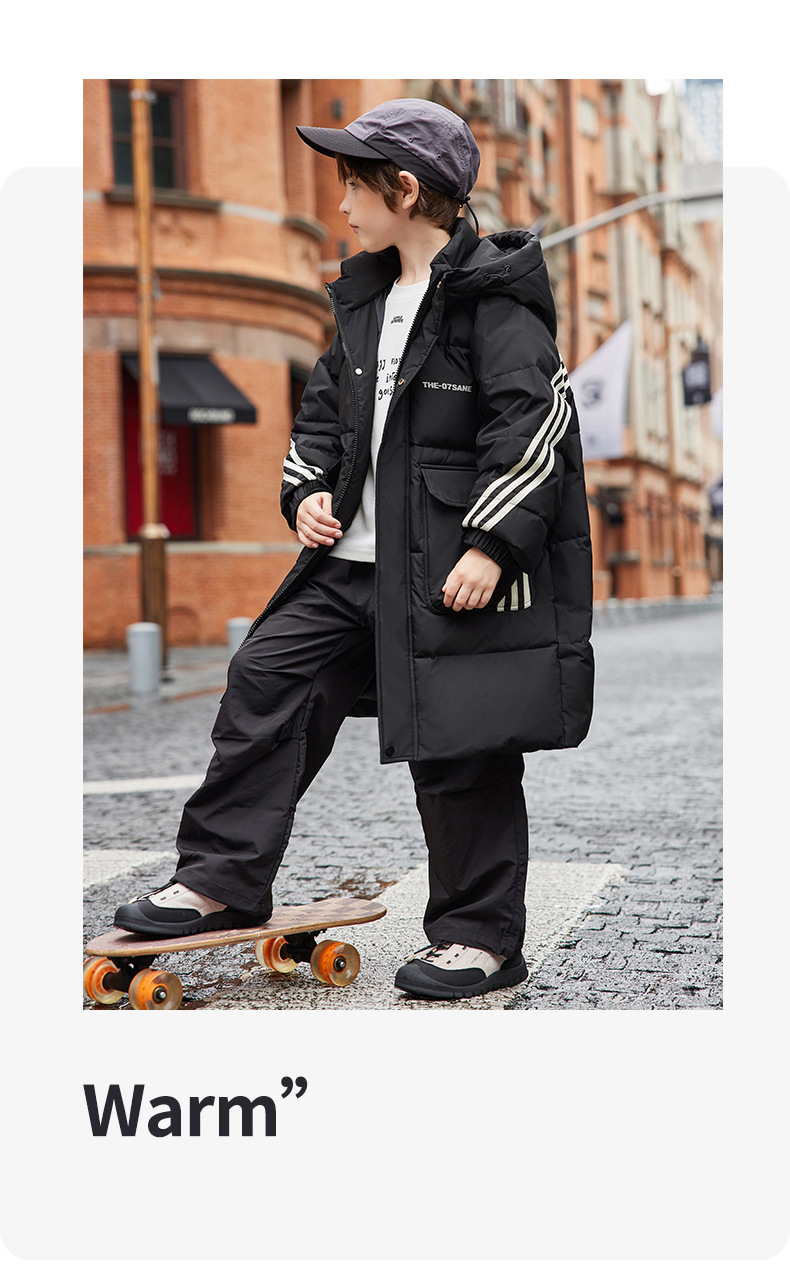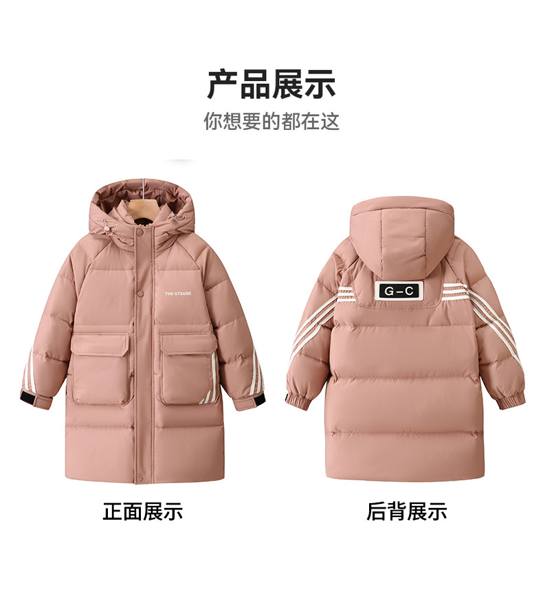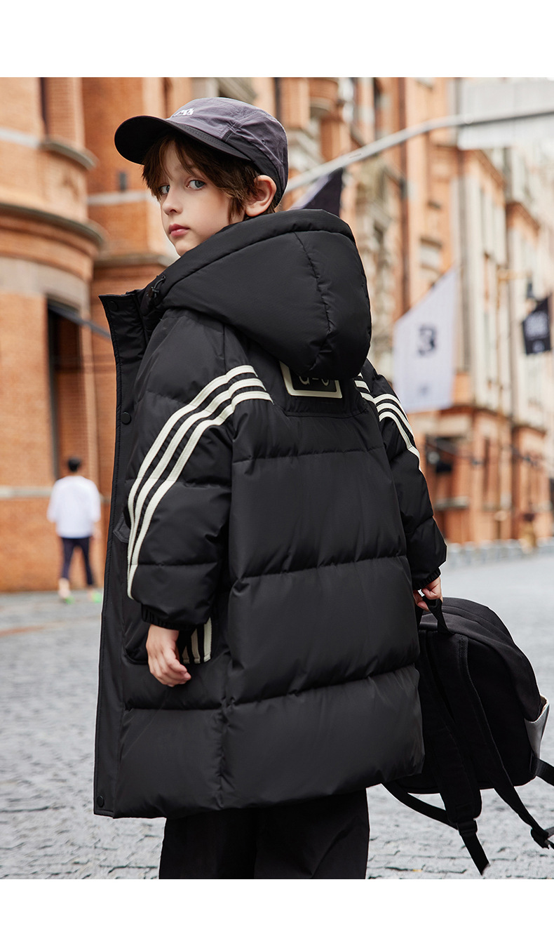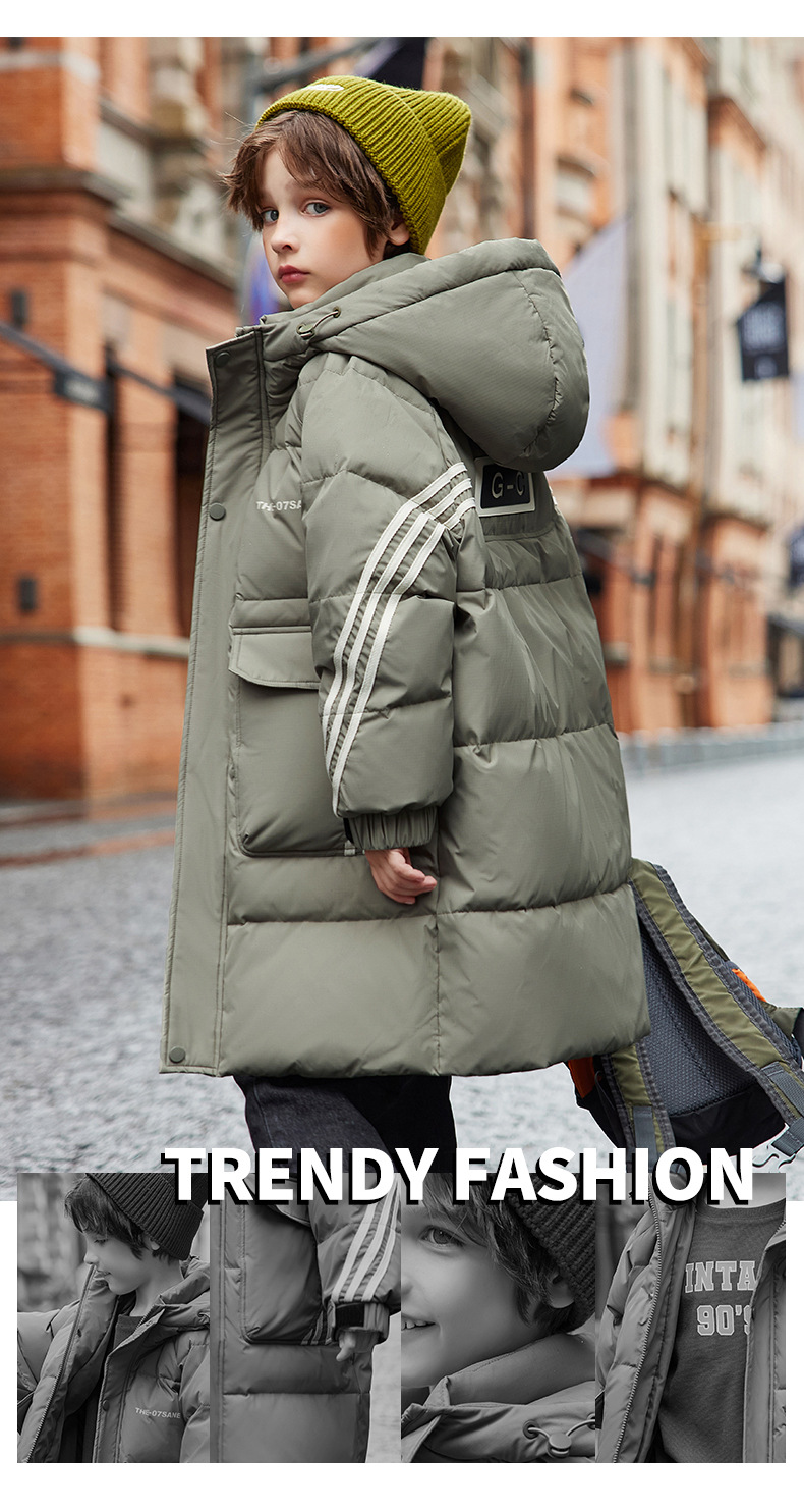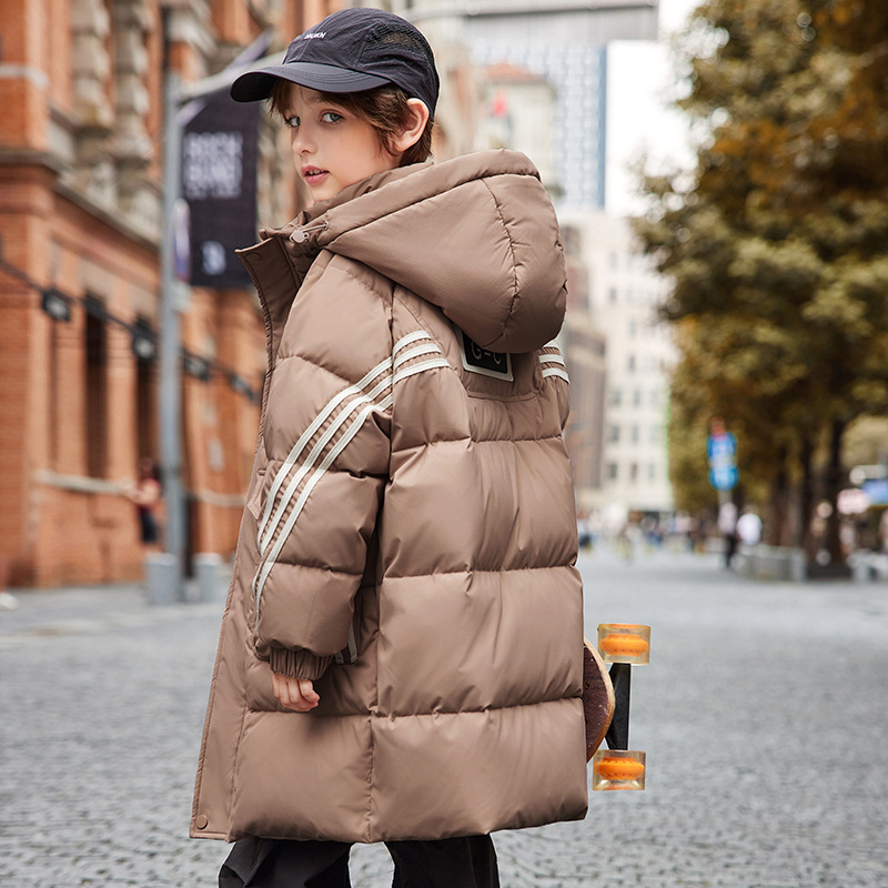 새로운 ABC 중형 및 대형 어린이 흰색 오리 다운 중간 길이 다운 재킷 소년 두꺼운 겨울 무릎 위 스타일 아동용 재킷스토어 가기