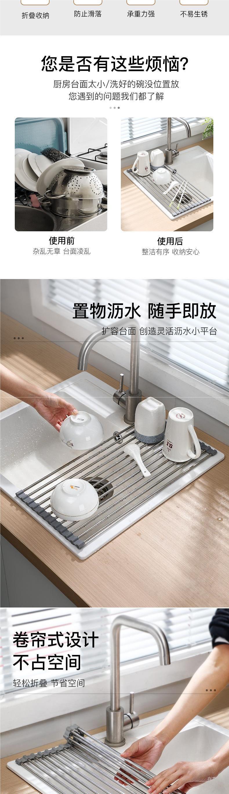 다기능 접이식 스테인레스 스틸 접시 세척 싱크 스토리지 랙 주방 싱크 접시 랙 배수 바구니 저장 드레인 랙스토어 가기