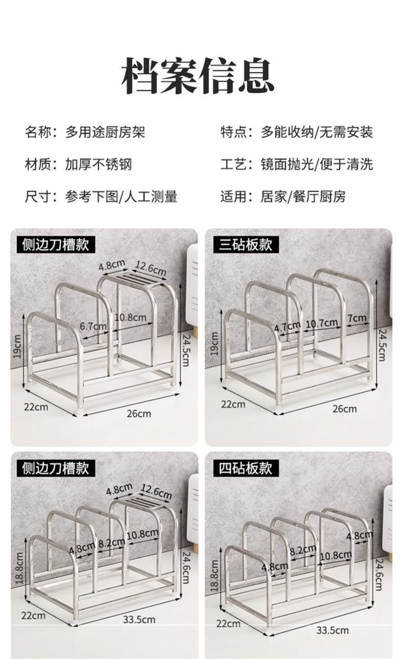 다기능 스테인레스 스틸 도마 선반 3 개 및 4 개의 칼 랙 테이블 도마 선반 기본 바닥 주방 스토리지 랙 포트 커버 랙