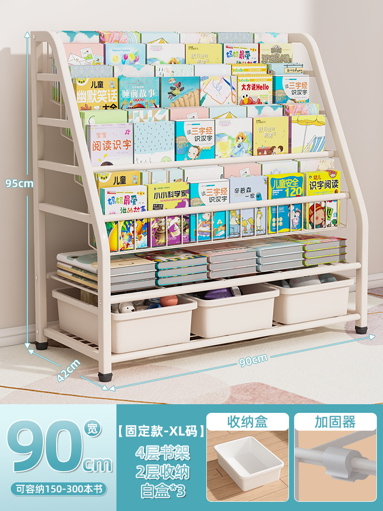 • [두꺼운 소재] 90CM-4단 책장 + 2단 수납선반 + 무료 흰색 상자 3개(고정형)