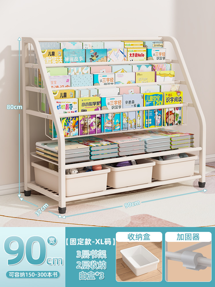 • [두꺼운 소재] 90CM-3단 책장 + 2단 수납선반 + 무료 흰색 박스 3개(고정형)