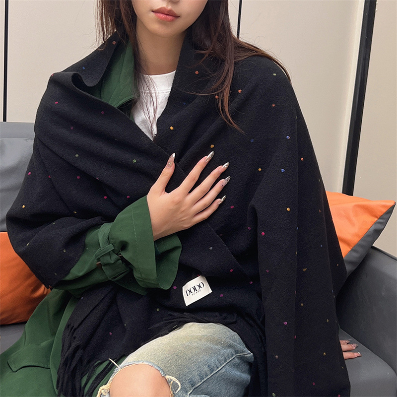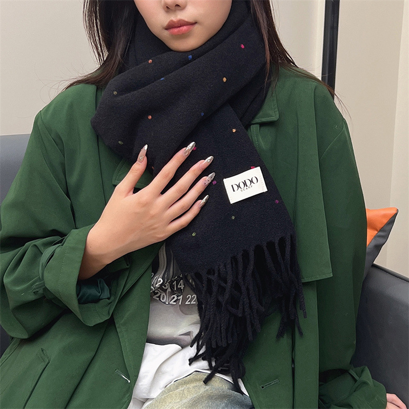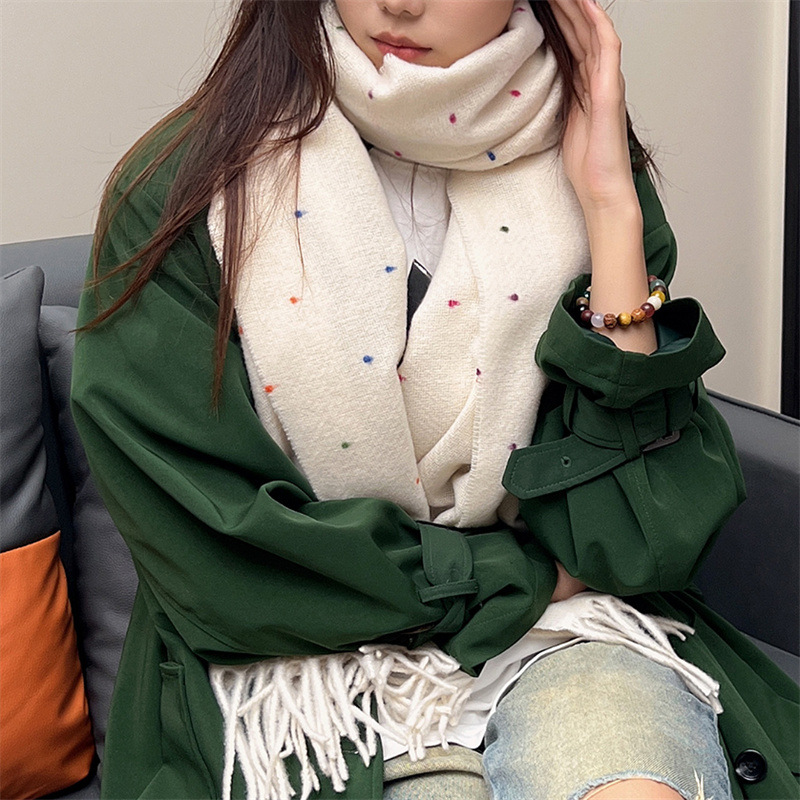 스카프 여성의 가을과 겨울 달콤한 두꺼운 따뜻한 스카프 한국 다재다능한 커플의 목도리 다채로운 점 니트 술
