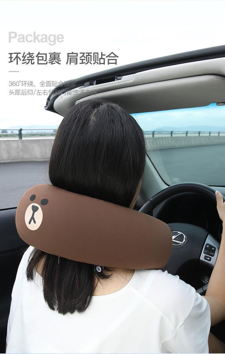 다크 브라운 자동차 머리 받침 목 베개 목 u 모양의 베개 만화 귀여운 자동차 베개 자동차 좌석 자궁 경부 베개스토어 가기