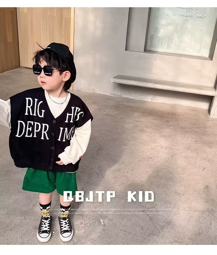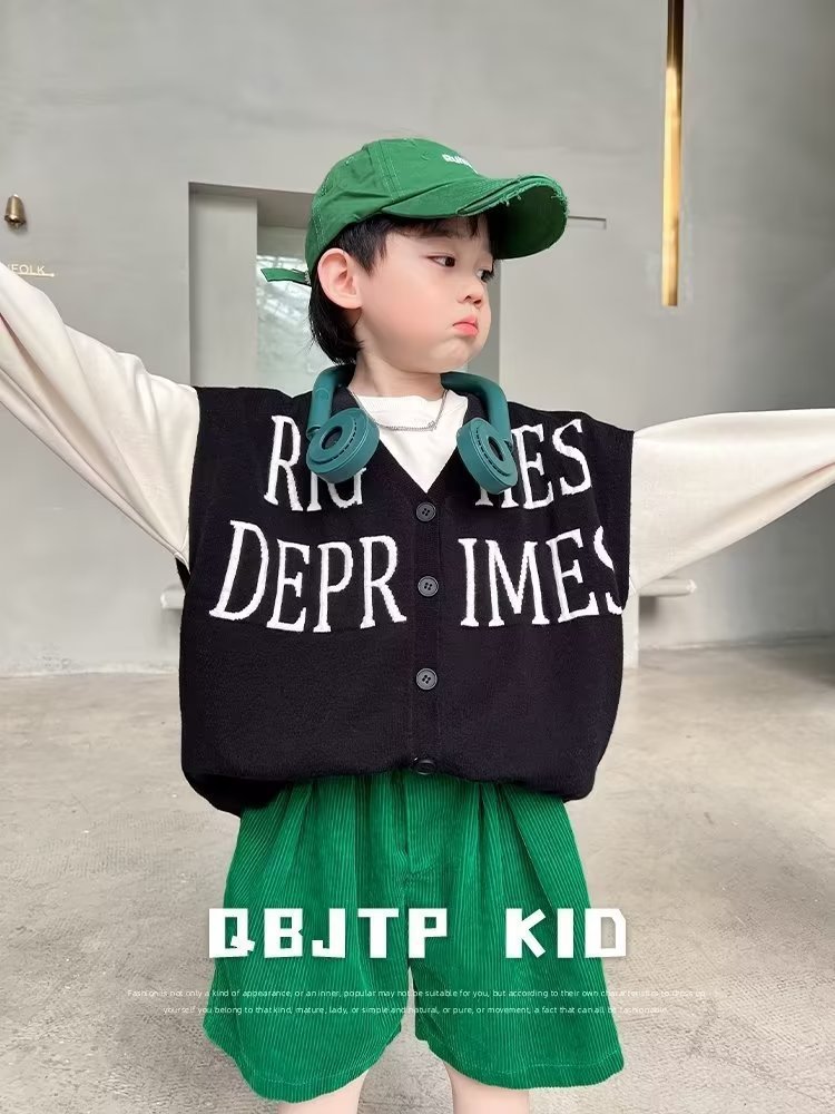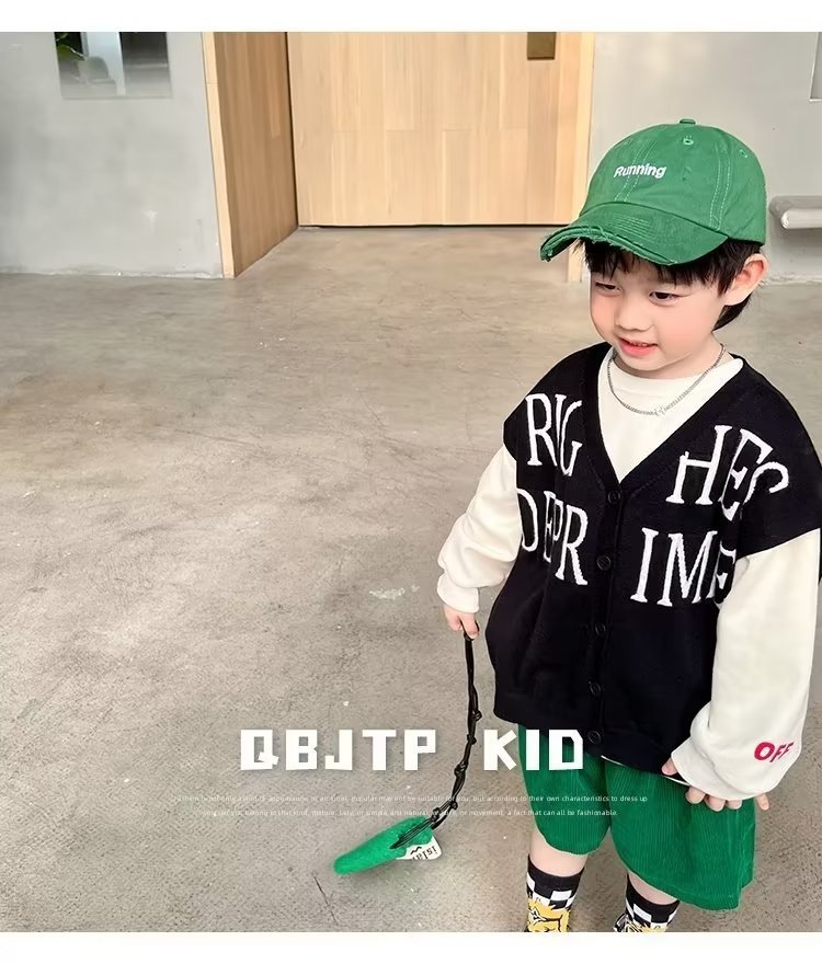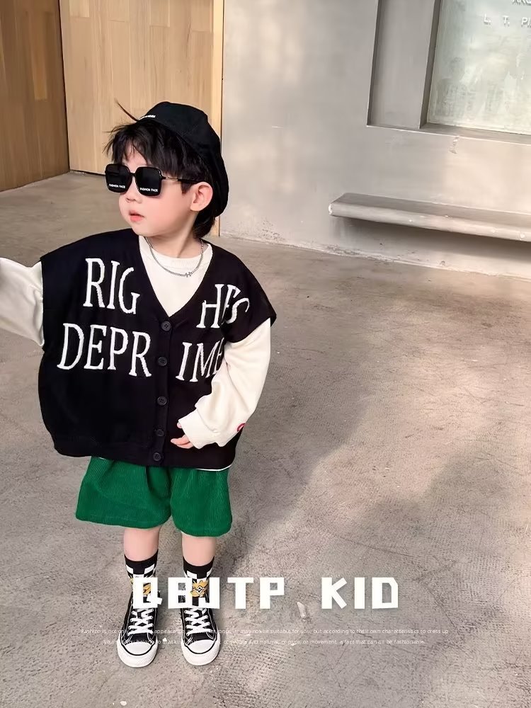 2024 년 봄 · 가을 입고 남학생 조끼 외모 신상 한국식 어린이 중 · 대형 어린이 편지 니트 스웨터 카디건 조끼스토어 가기