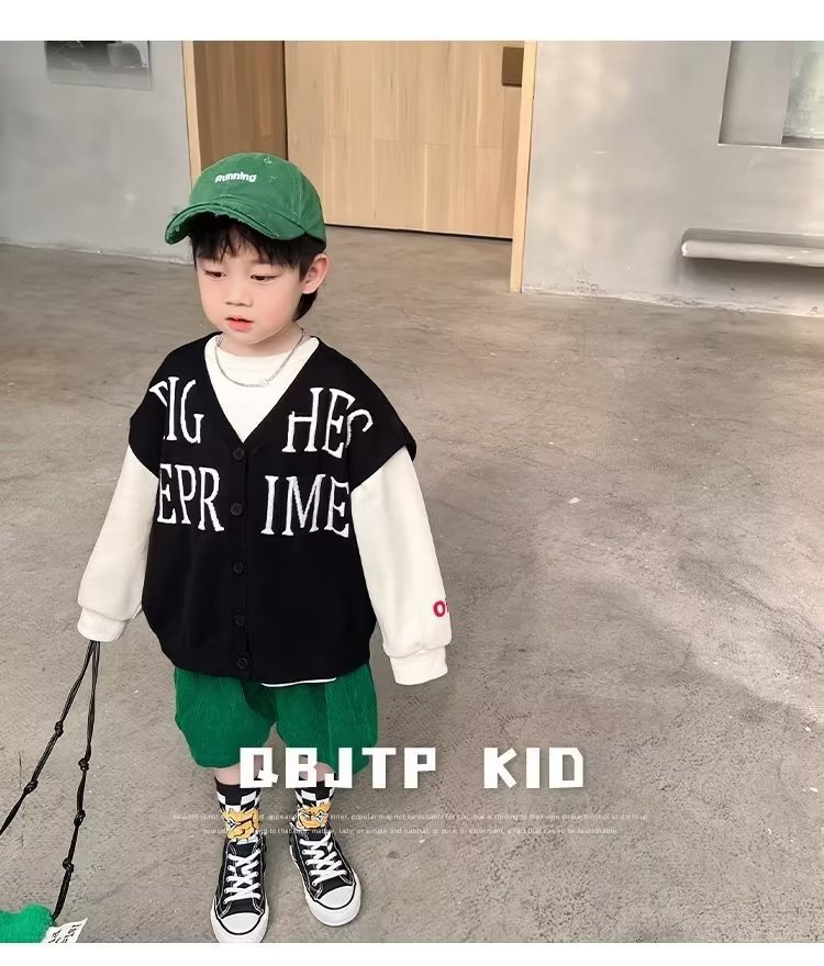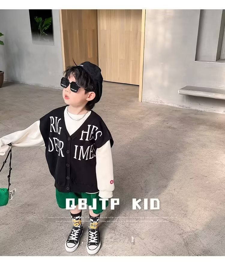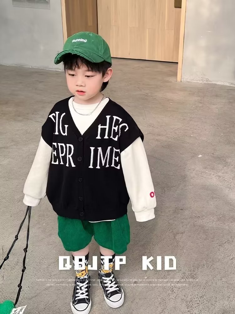 2024 년 봄 · 가을 입고 남학생 조끼 외모 신상 한국식 어린이 중 · 대형 어린이 편지 니트 스웨터 카디건 조끼