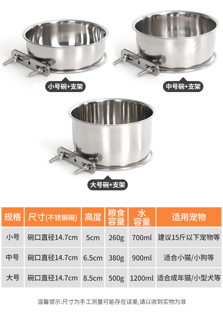 스테인레스 스틸 더블 스크류 안티 노크 교수형 고정 애완 동물 그릇 고양이와 개 마시는 그릇 두꺼운 그릇 고양이 먹이 그릇스토어 가기