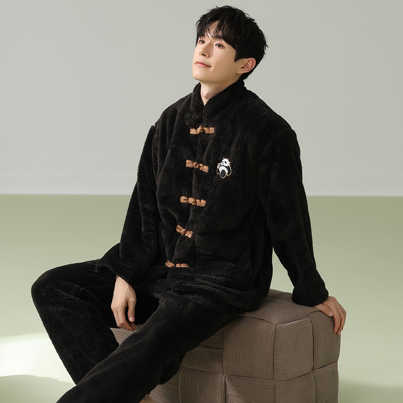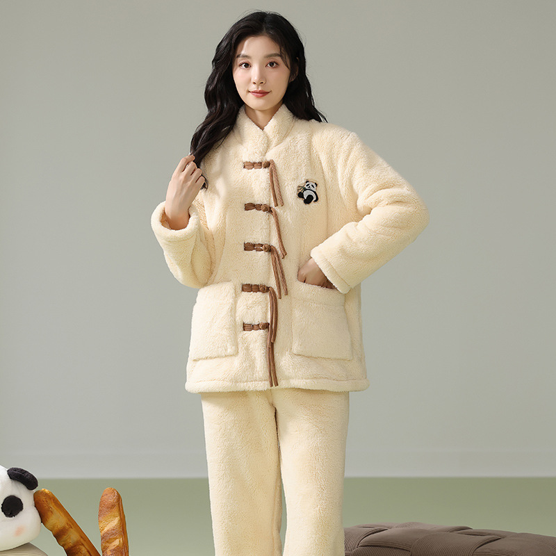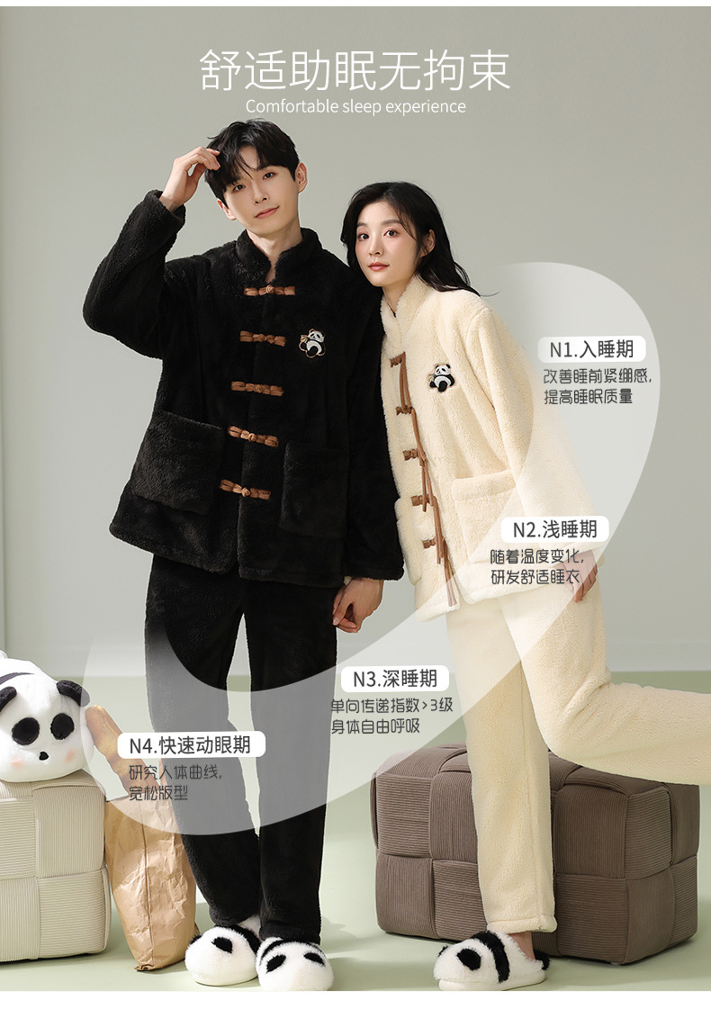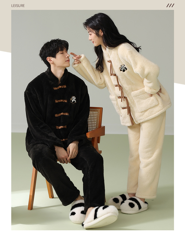 겨울 산호 양털 새 중국 스타일 커플 파자마 여성 중국 스타일 남성 플란넬 탕 세트 버클 홈 옷스토어 가기