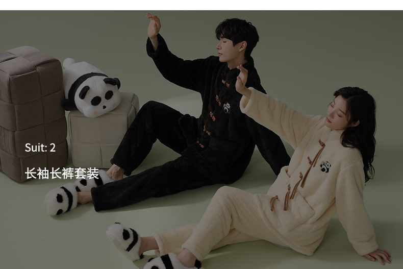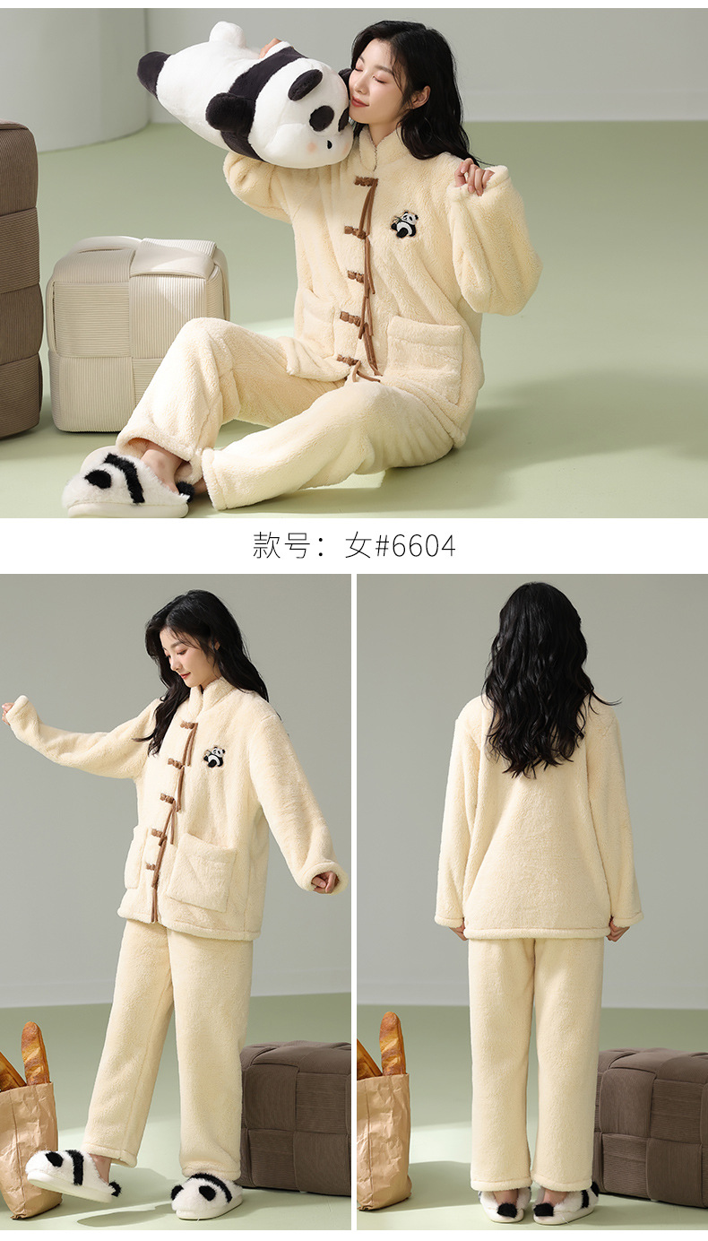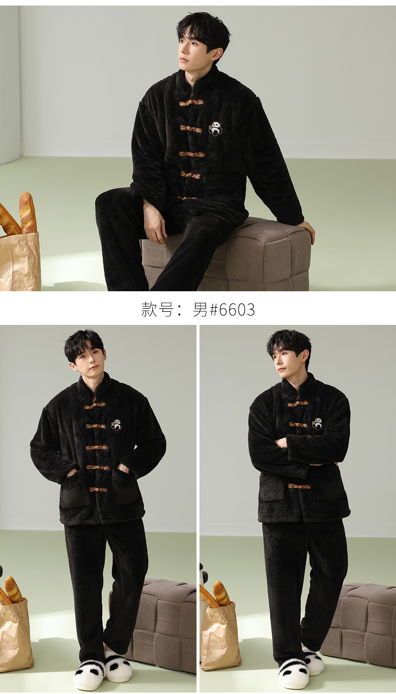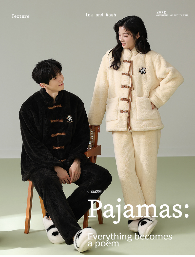 겨울 산호 양털 새 중국 스타일 커플 파자마 여성 중국 스타일 남성 플란넬 탕 세트 버클 홈 옷스토어 가기