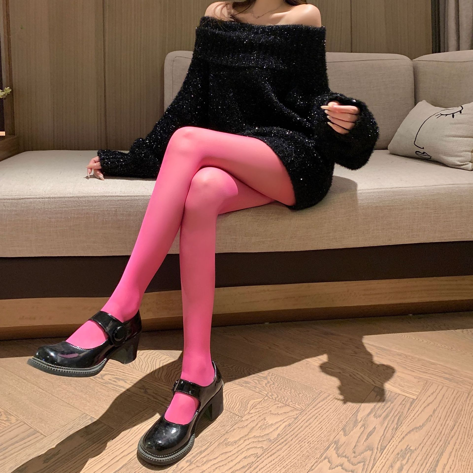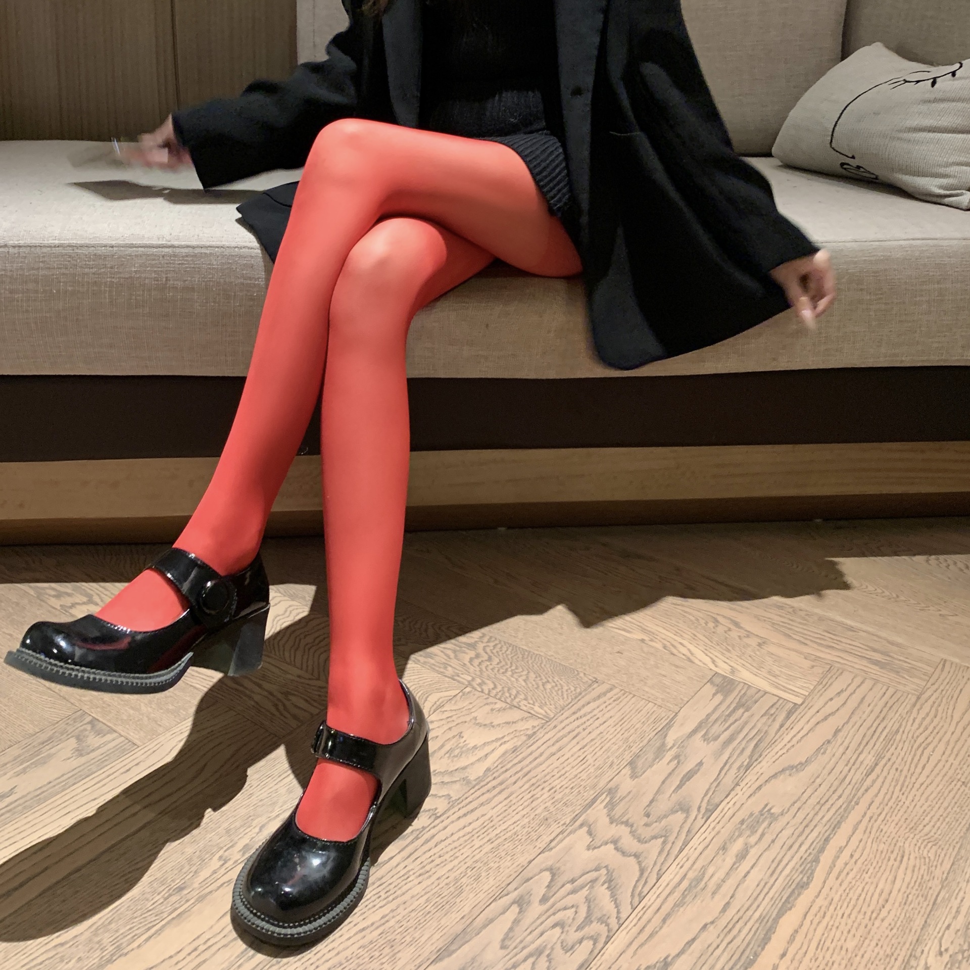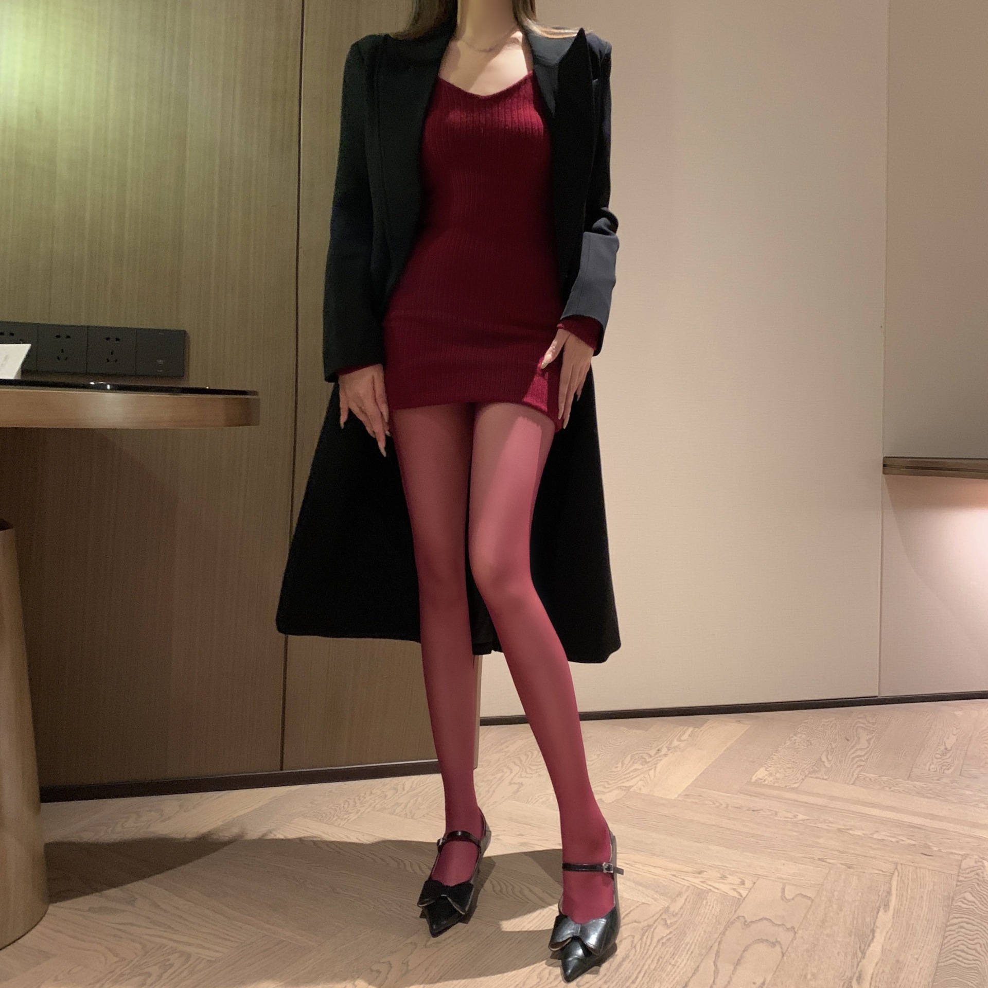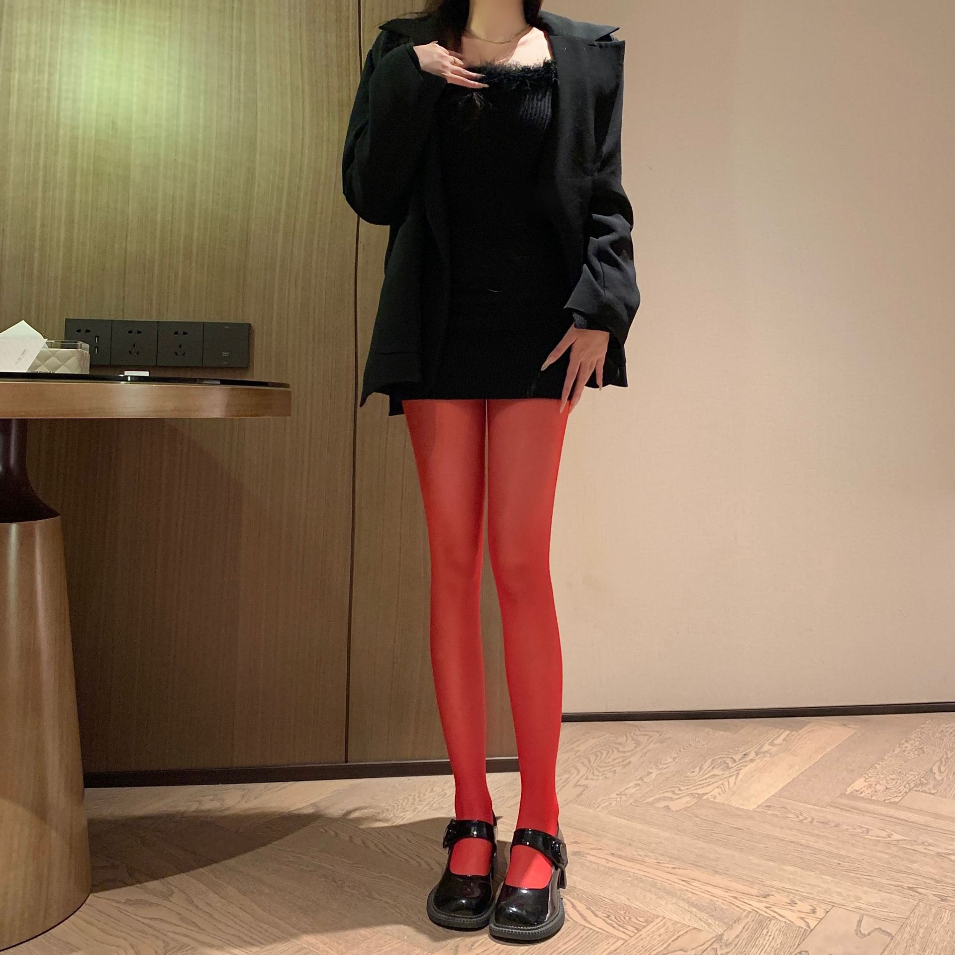 투웨이 캔디 컬러 벨벳 얇은 스타킹 순수한 섹시한 매력적인 레드 봄 여름 스타일 투명한 피부색 스타킹스토어 가기