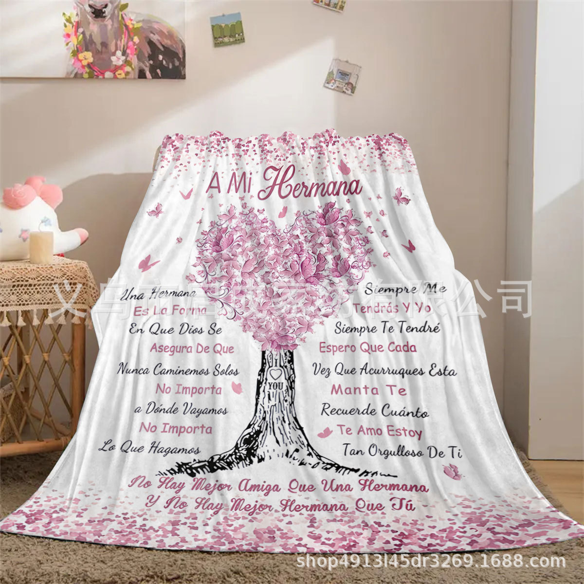 스페인어 플란넬 담요, 자매, 친구, 딸, 어머니, 할머니 봉투 담요에 스페인어 메시지