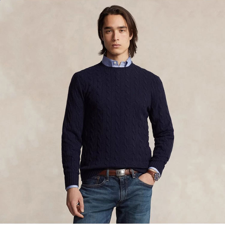 Raff의 같은 스타일 조랑말 자수 스웨터 남성용 가을, 겨울 2022 새로운 풀오버 울 스웨터 남성용 라운드 넥 긴팔 스웨터스토어 가기
