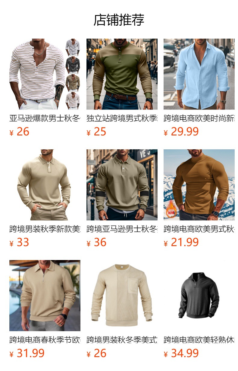 本厂专业生产外贸男士服装,专供跨境尺码均为欧美尺码版型偏大面料:提花,棉麻,聚酯纤维,国内平台代发以及自穿请谨慎购买!