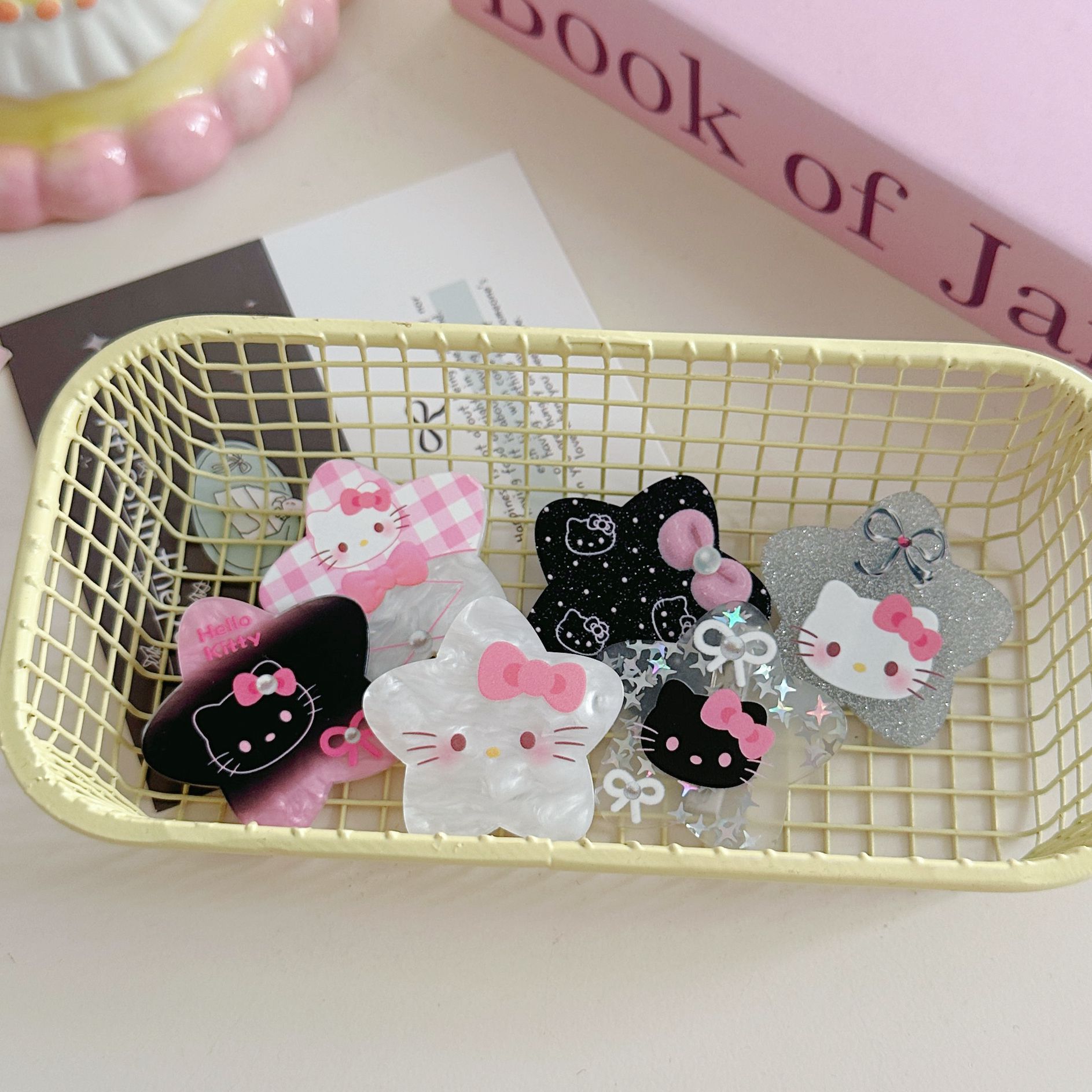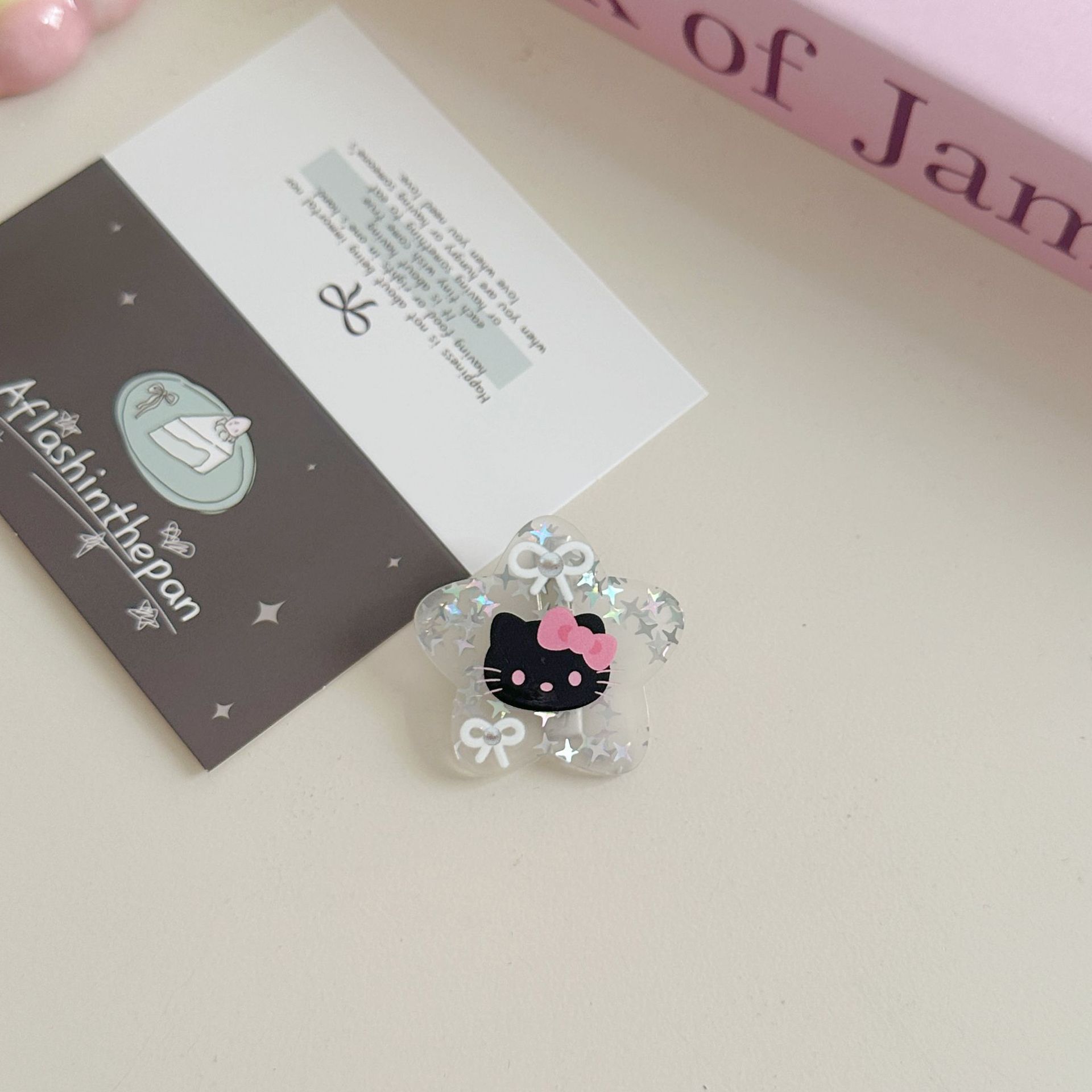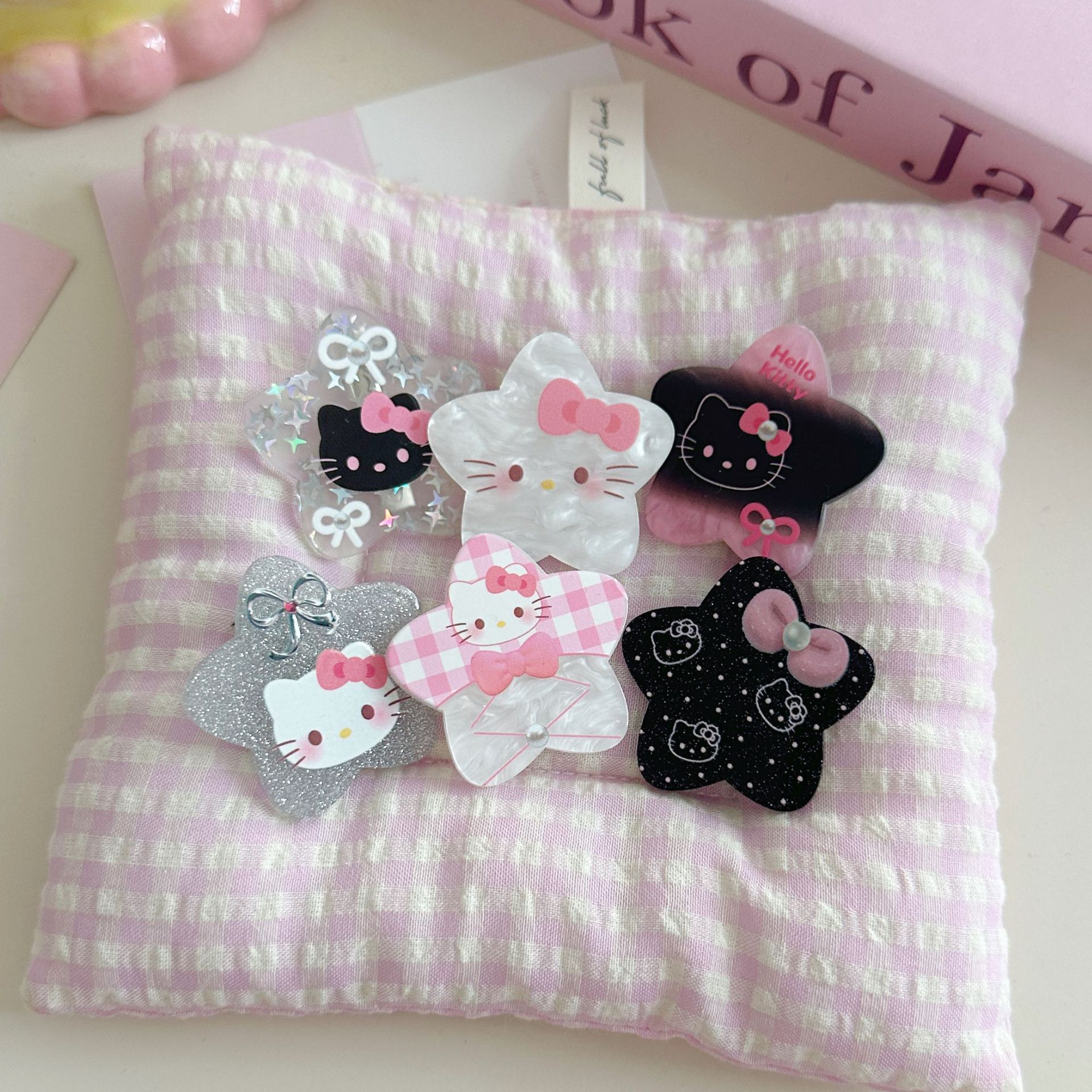 (다섯개 별 버전) 여섯 실버 파우더 스파클링 헤어핀 달콤한 귀여운 소녀 만화 학생 헤드웨어 덕빌 클립 여성