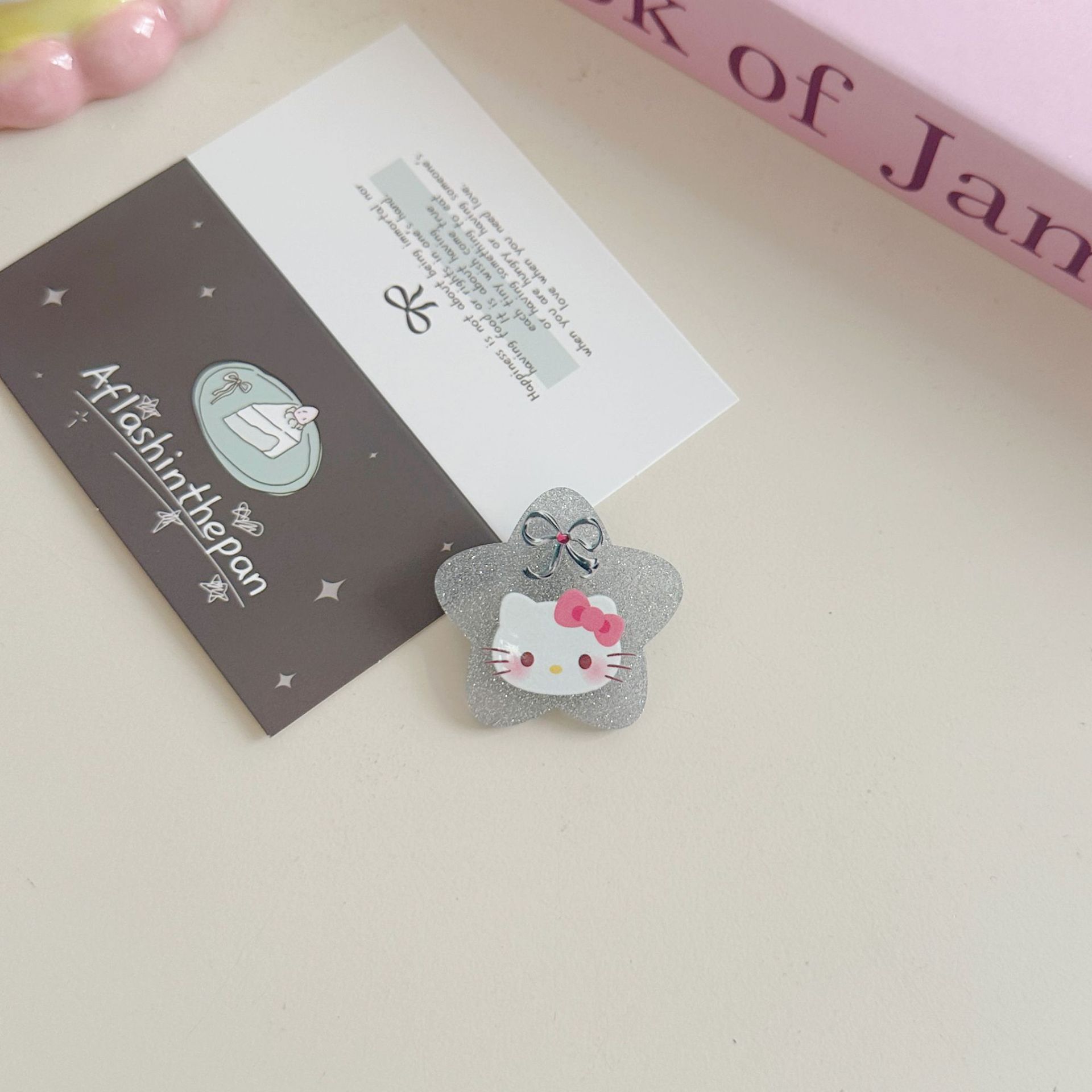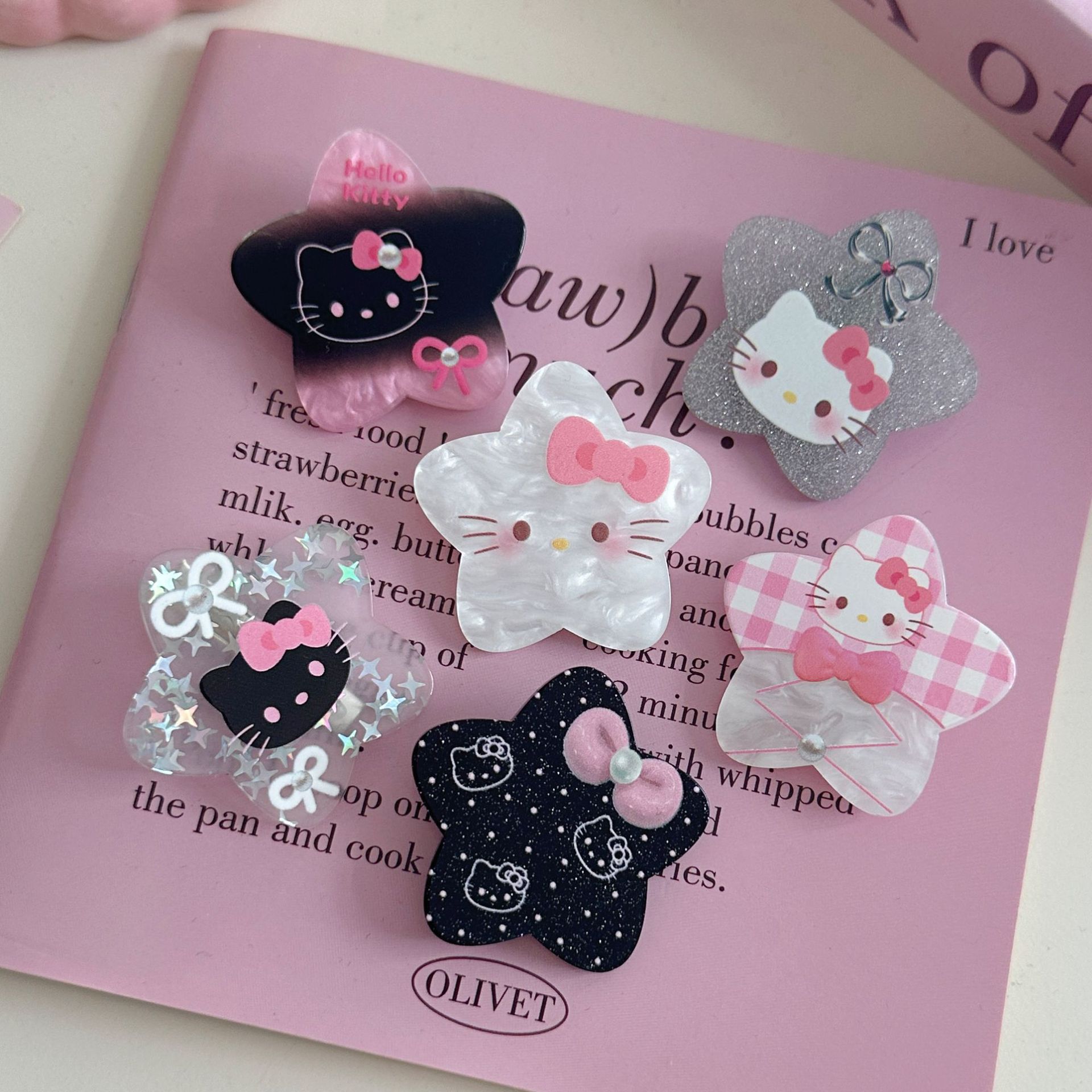 (다섯개 별 버전) 여섯 실버 파우더 스파클링 헤어핀 달콤한 귀여운 소녀 만화 학생 헤드웨어 덕빌 클립 여성스토어 가기