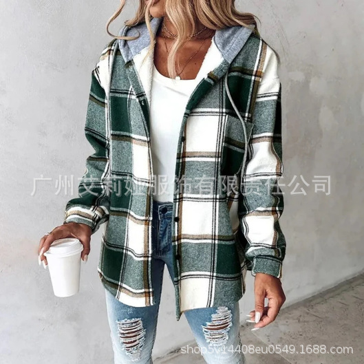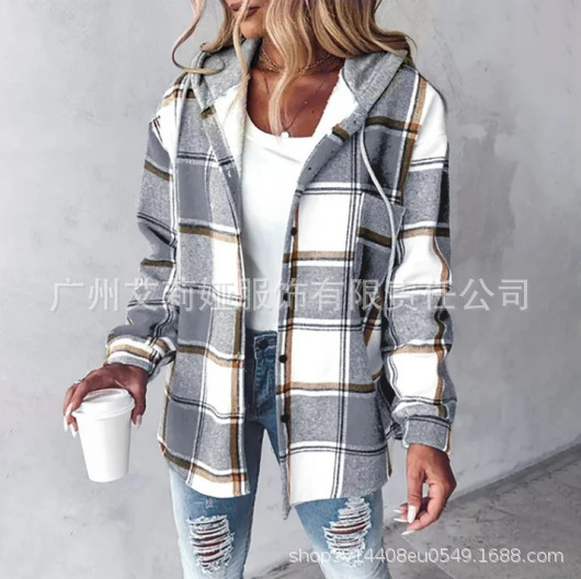 2025 유럽 및 미국 캐주얼 스타일 알리익스프레스 아마존 인기 여성용 대형 체크무늬 코트 체크무늬 가을 겨울 신상품스토어 가기