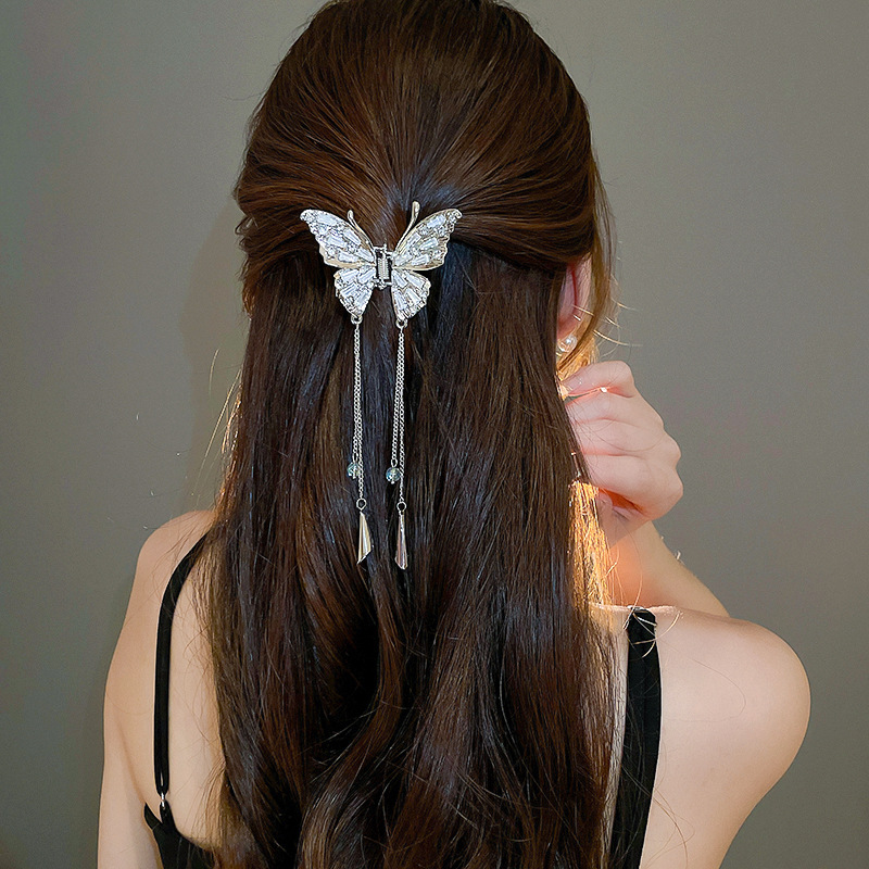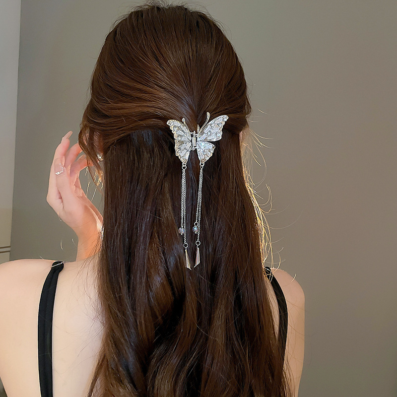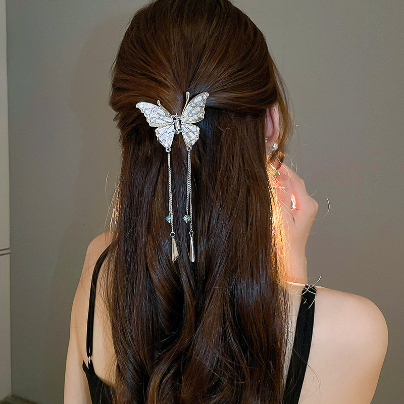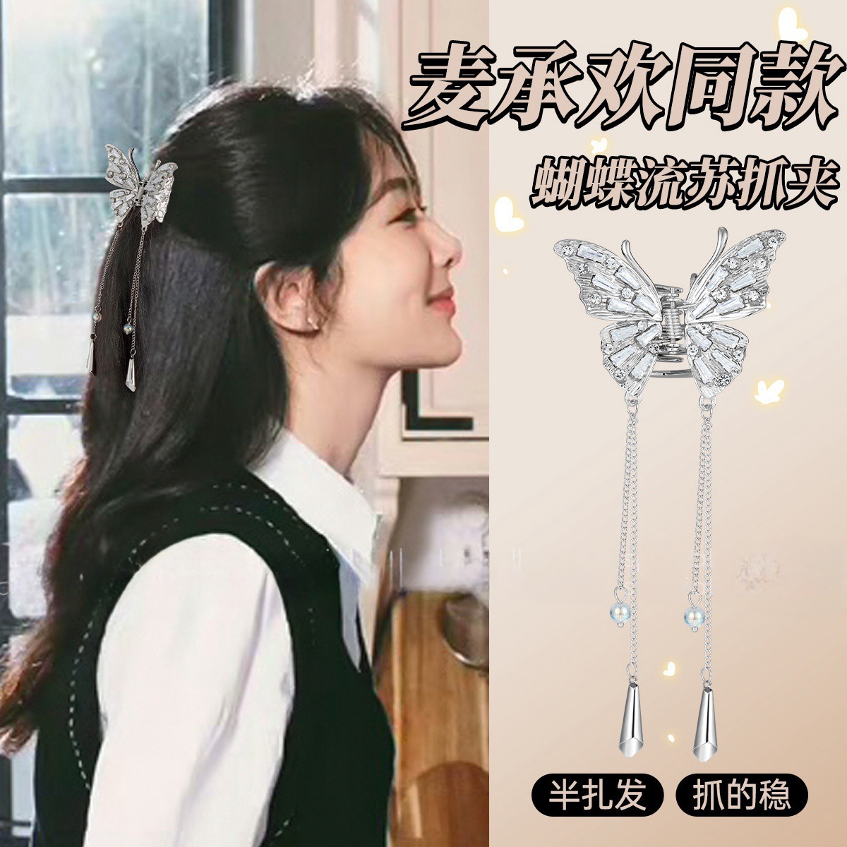 나비 술 머리 머리 머리 스몰 사이즈 반 넥타이 머리 잡아 클립 2024 새로운 상어 클립 새로운 중국 스타일 헤드폰