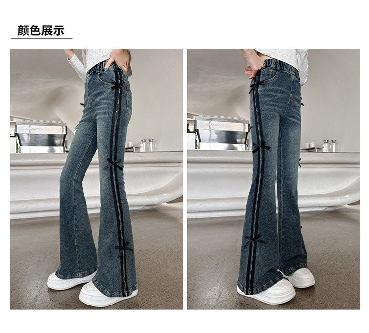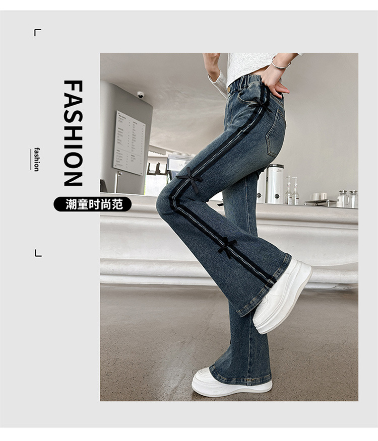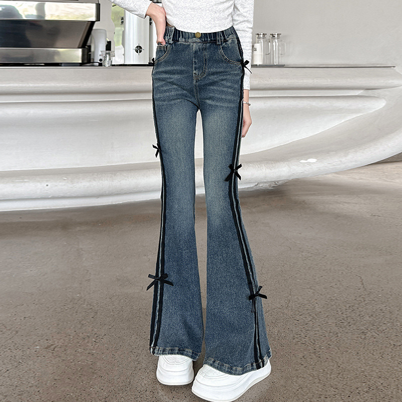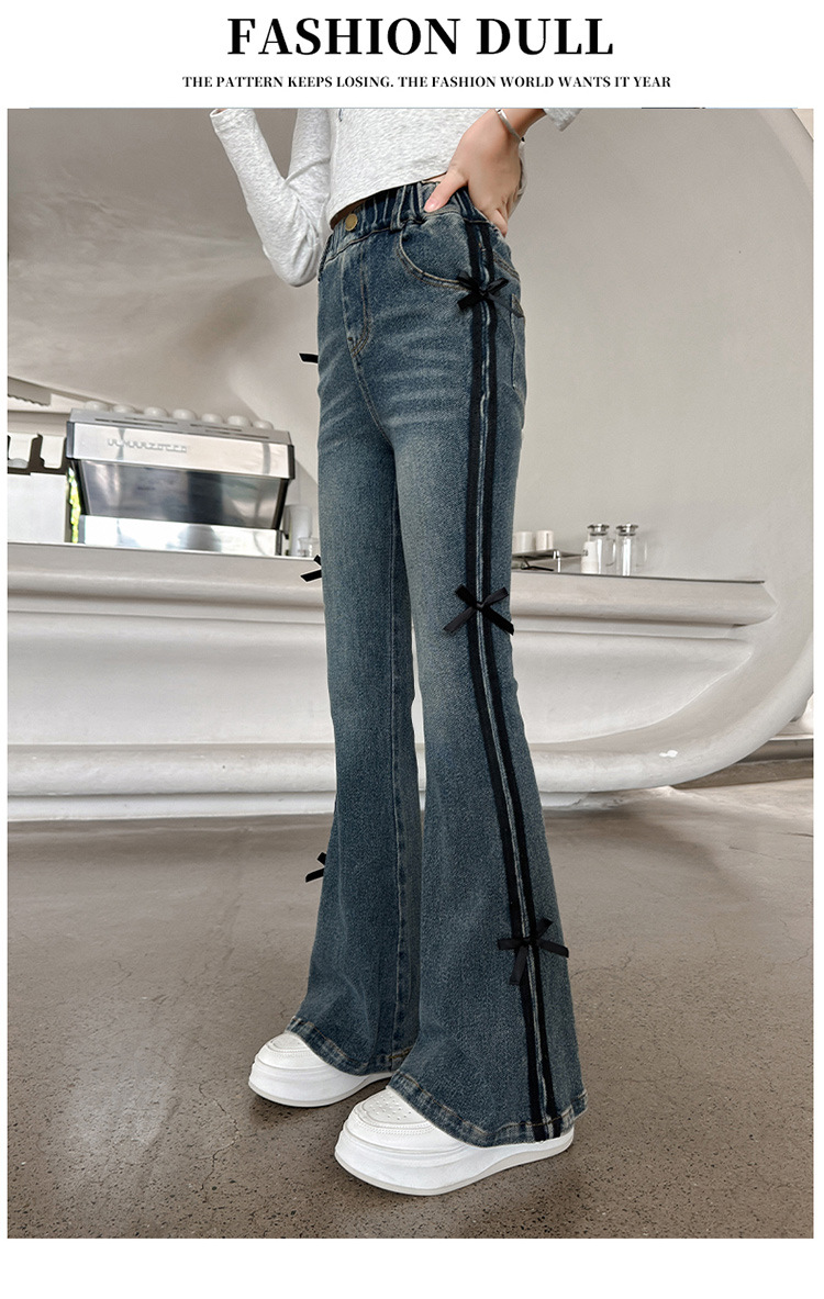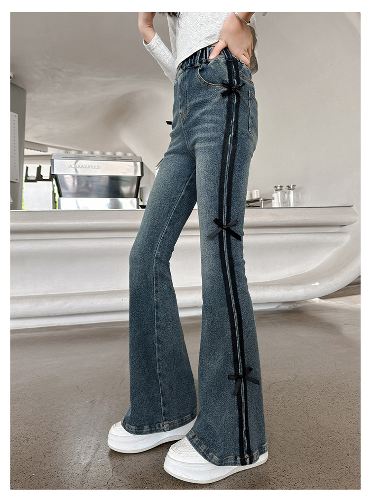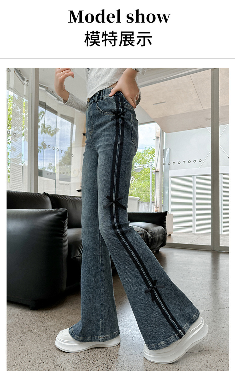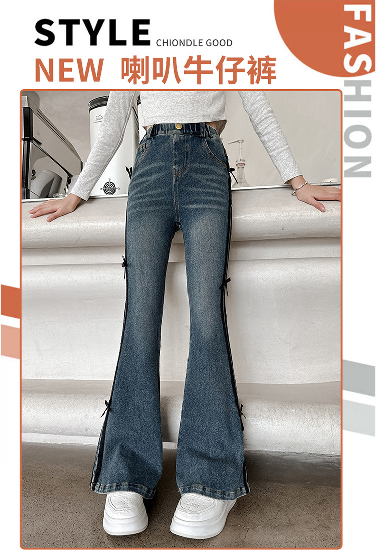 소녀 기모 청바지 2024 새로운 겨울 두꺼운 어린이 겨울 착용 소녀 대형 어린이 마이크로 플레어 바지스토어 가기