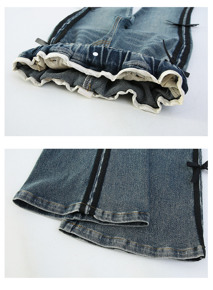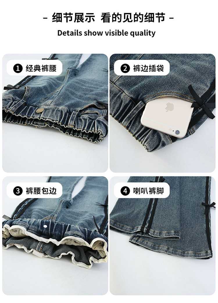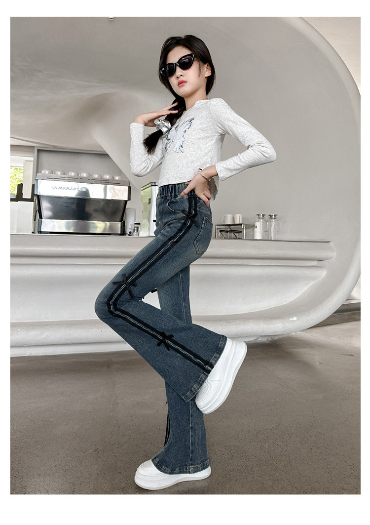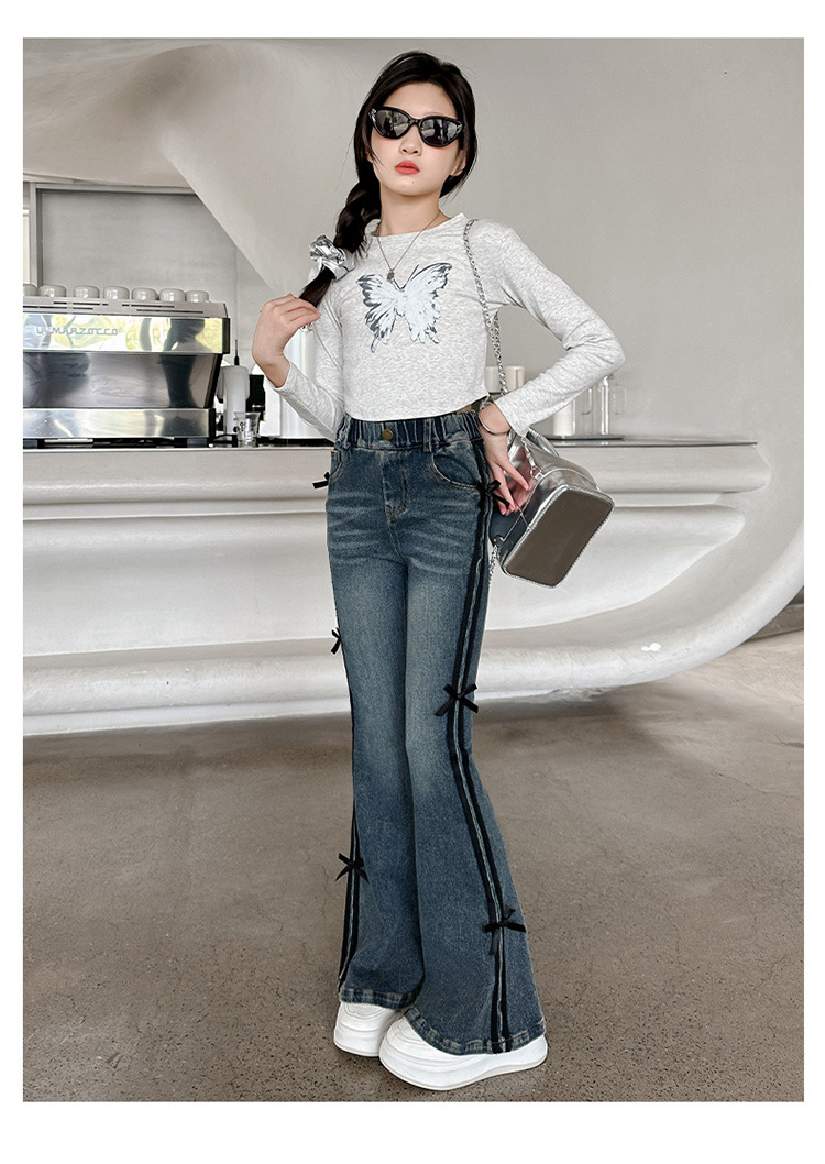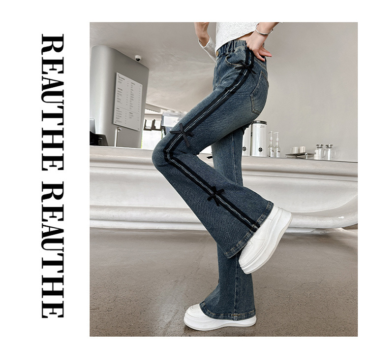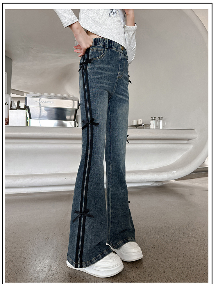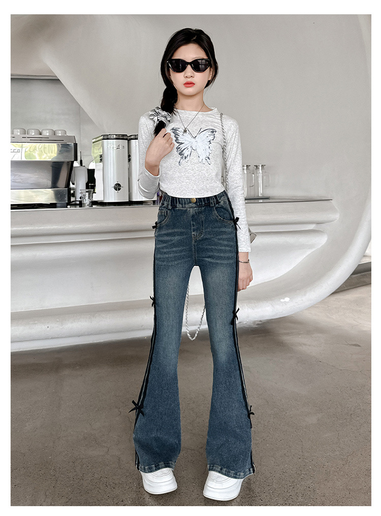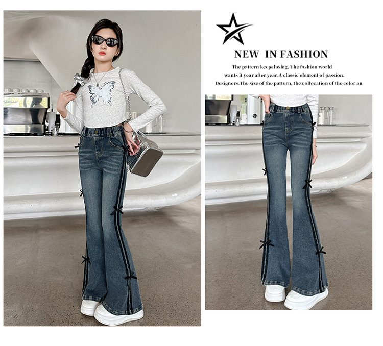소녀 기모 청바지 2024 새로운 겨울 두꺼운 어린이 겨울 착용 소녀 대형 어린이 마이크로 플레어 바지스토어 가기